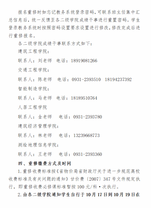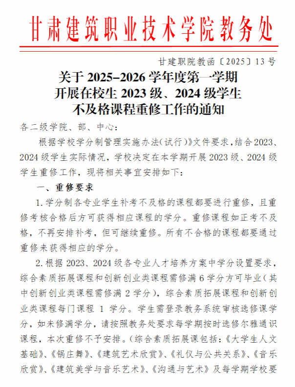 关于2025-2026学年度第一学期开展在校生2023级、2024级学生不及格课程重修工作的通知
