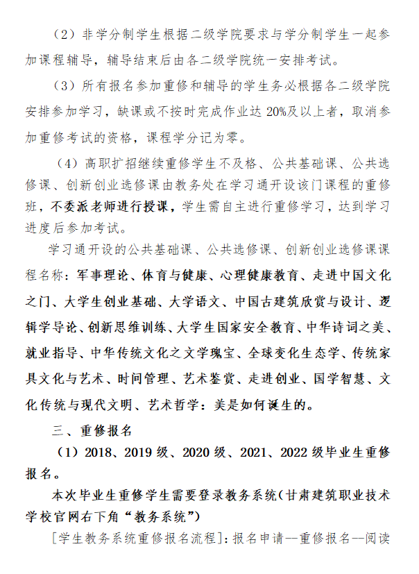 关于2025-2026学年度第一学期往届毕业学生重修报名的通知