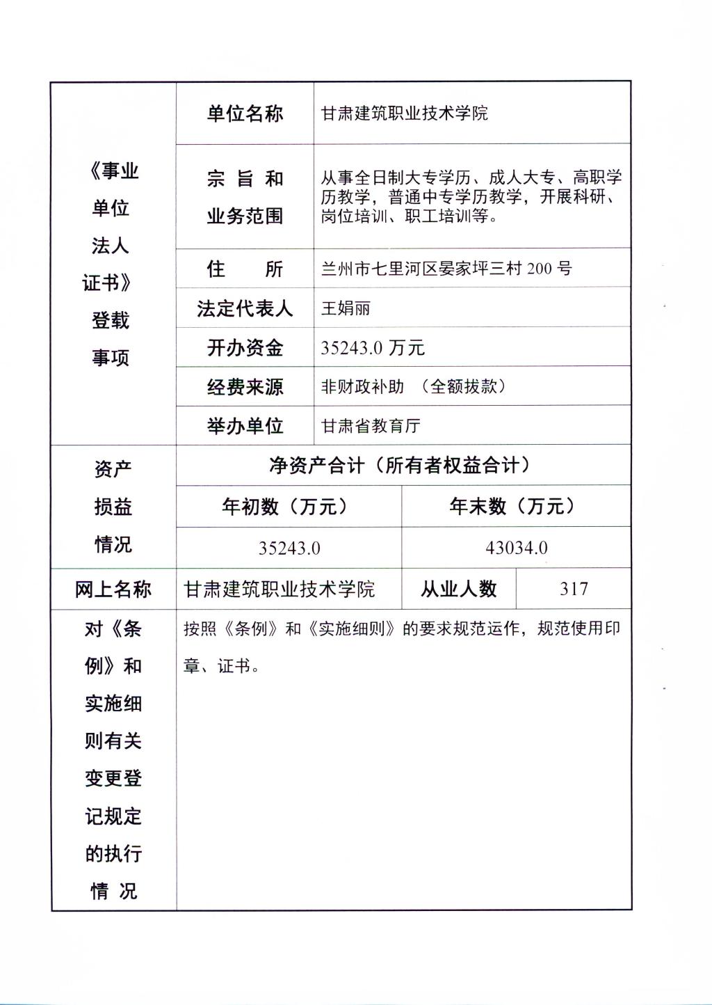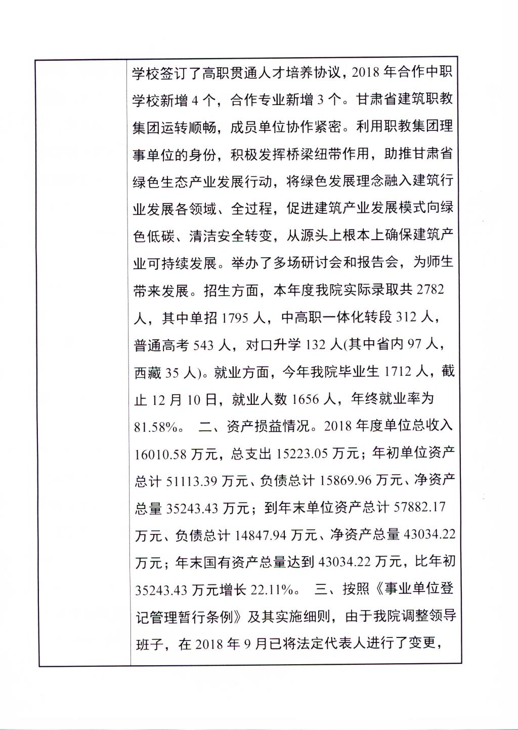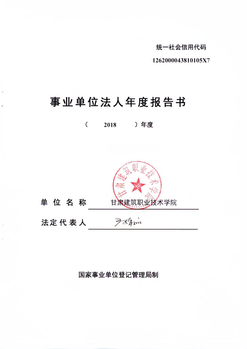 甘肃建筑职业技术学院事业单位法人年度报告书
