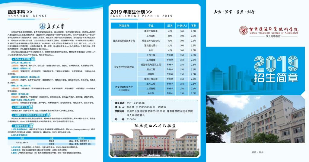 甘肃建筑职业技术学院2019成人高等教育招生简章