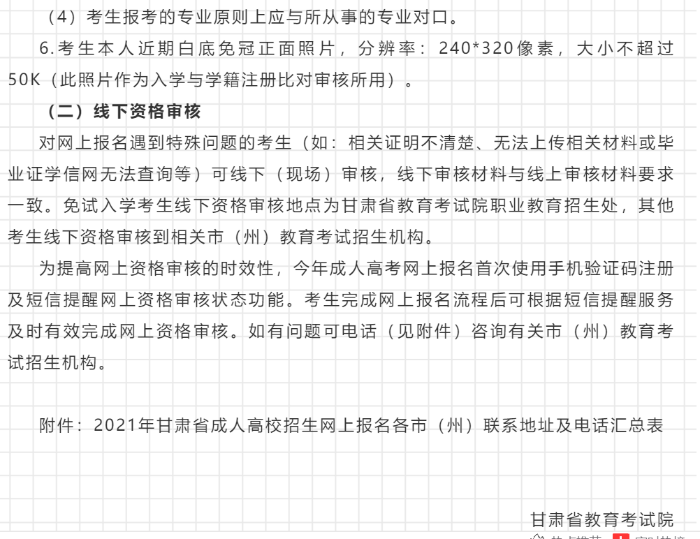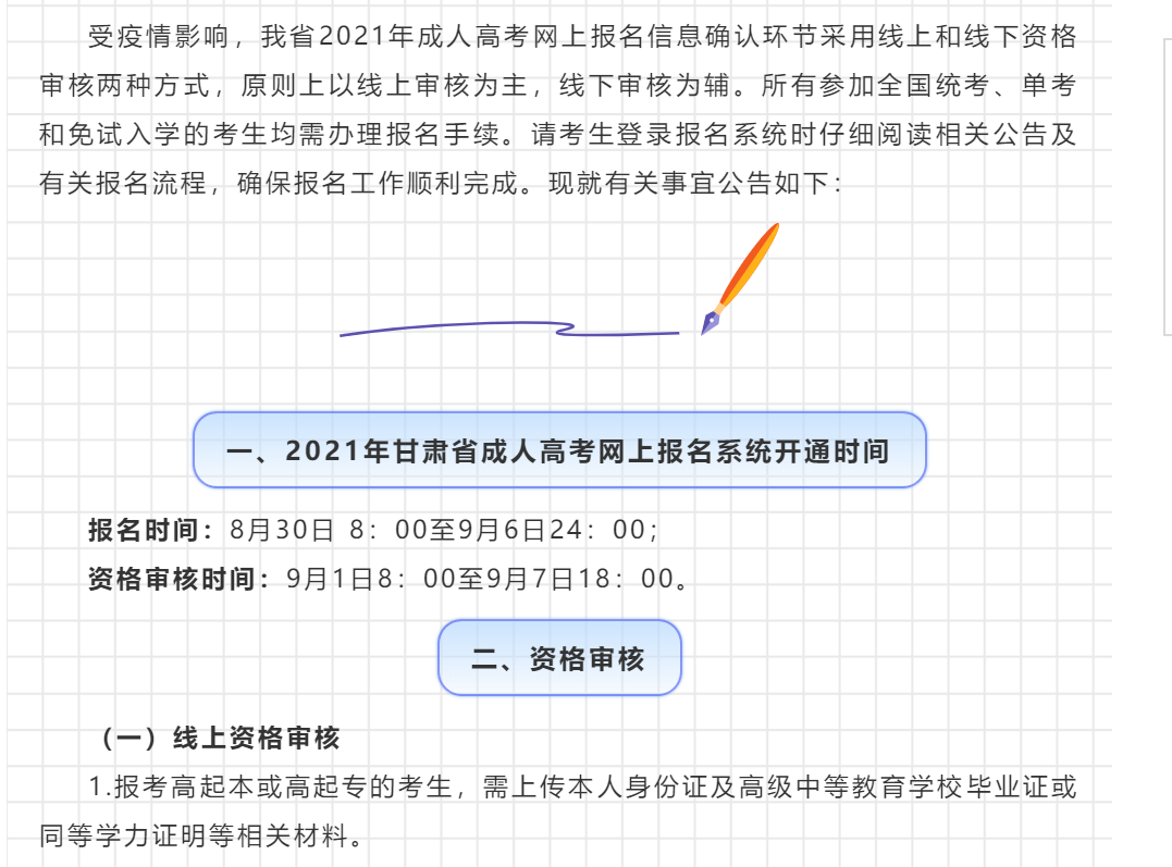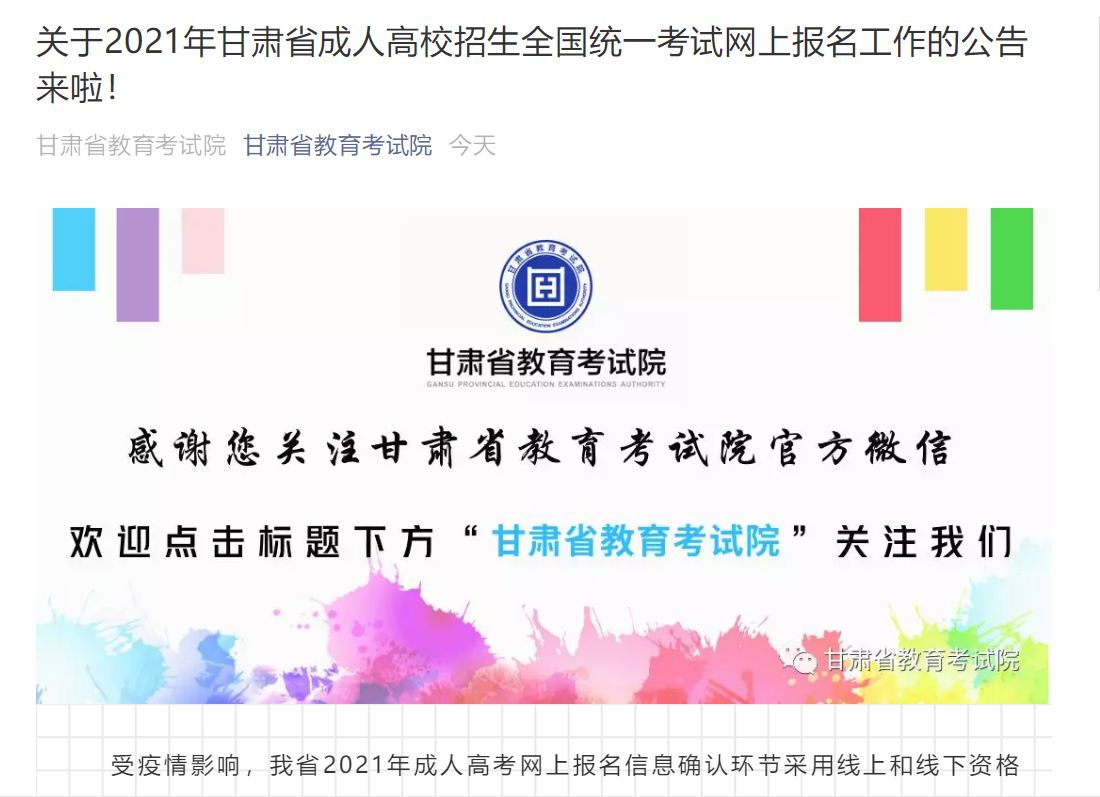 2021年甘肃省成人高校招生全国统一考试网上报名工作公告