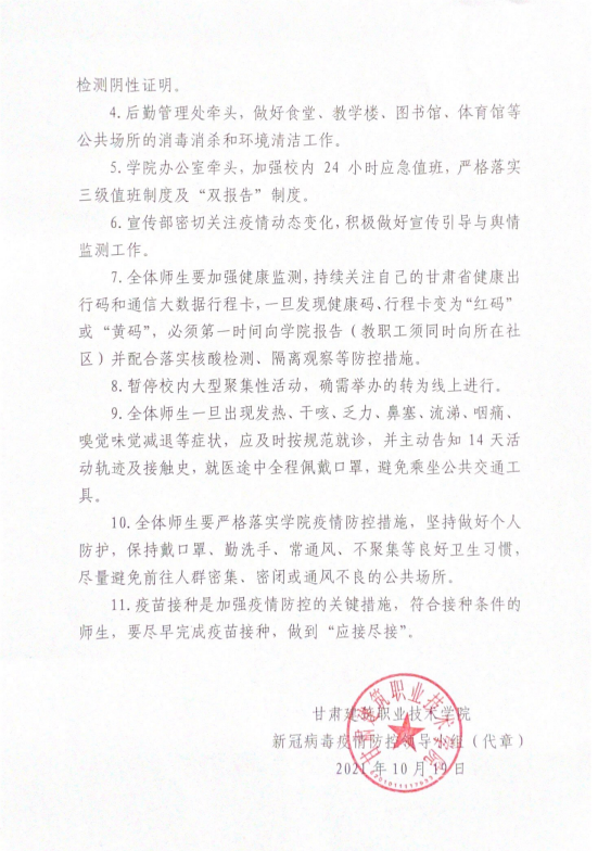 甘肃建筑职业技术学院关于加强疫情防控工作的紧急通知