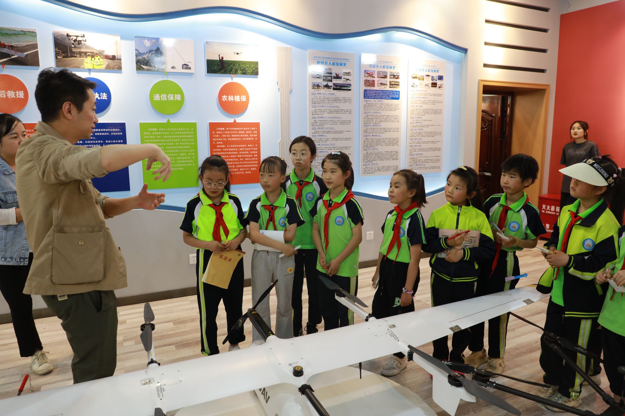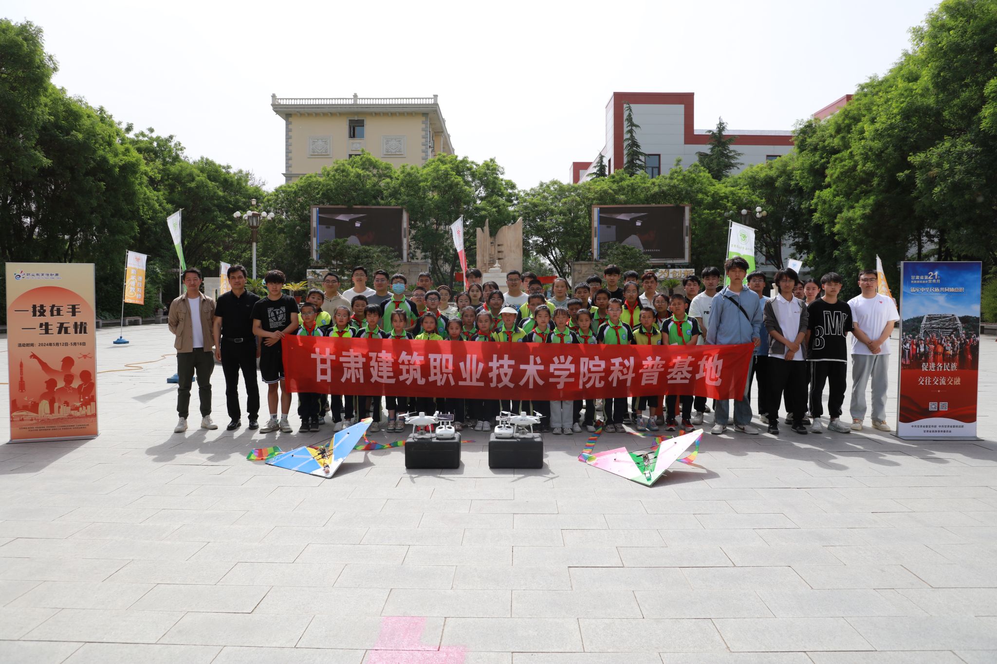 5月16日,学院测绘地理信息系组织了一场无人机科普教育活动,兰州市七里河区晏家坪第二小学的若干名小学生在老师的带领下参与了本次活动。活动旨在通过实地参观和体验,让小学生近距离接触无人机,了解无人机的飞行原理和在现代社会低空经济中的应用和发展前景。