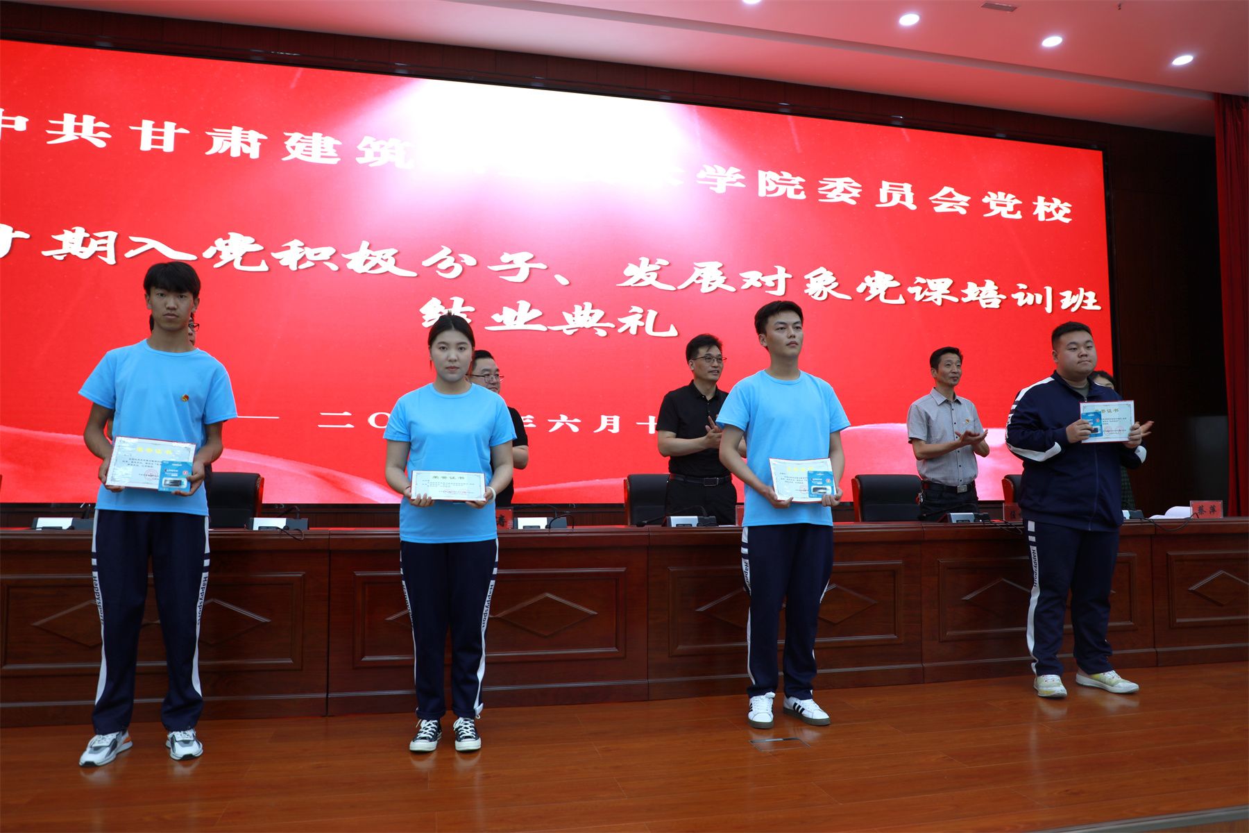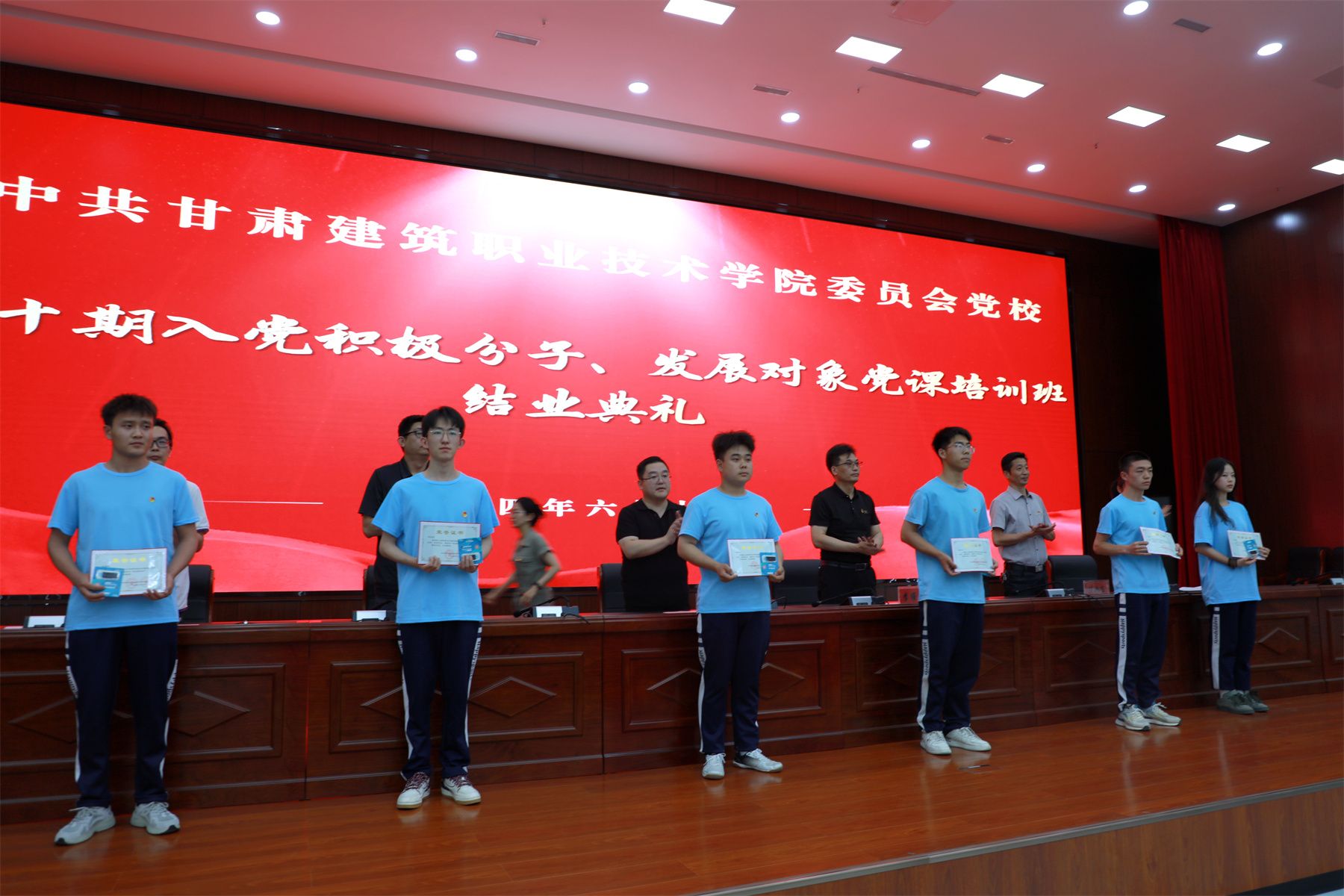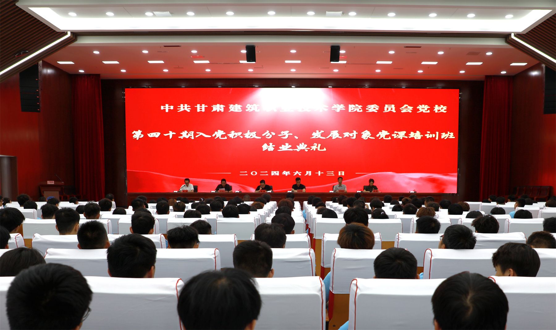 6月13日,甘肃建院举办第四十期入党积极分子、发展对象党课培训班结业典礼。学院党委宣传统战部部长李维敦,组织人事处处长、教师发展中心主任崔涛,各系部党总支书记、师生入党积极分子、党员发展对象代表300余人参加,结业典礼由环境与市政工程系党总支书记王亮主持。