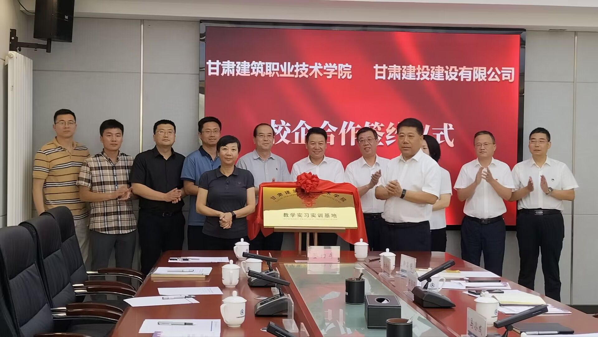 6月18日,学院与甘肃建投建设有限公司举行校企合作签约授牌仪式。学院党委书记、院长王娟丽,党委委员、副院长李君宏,教务处、建筑工程系负责人等参加仪式。甘肃建投建设有限公司党委书记、董事长马小成,党委副书记、总经理孙康才,党委副书记、工会主席芮剑锋,党委委员、副经理魏晋珍以及相关职能部门负责人参加;仪式在甘肃建投建设有限公司九楼3#会议室举行,仪式由马小成主持。