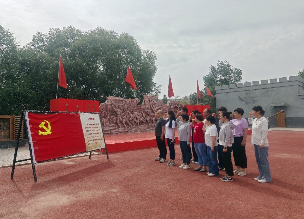 活动开始,在沈家岭村战役纪念广场,全体党员们举起右拳,面对鲜红的党旗,庄严宣誓,重温入党初心,筑牢对党忠诚的品格。随后党员们观看了由一幅幅革命先辈不怕牺牲、英勇战斗、可歌可泣的兰州战役纪实场景图画构成的红色文化长廊,凭吊了沈家岭战场旧址。在兰州战役沈家岭战场地形沙盘前,党员同志们认真了解了沈家岭作为兰州“锁钥”在兰州战役中的重要性,感受了当年在沈家岭战场有3000多名革命先烈为解放兰州、为建立新中国抛头颅、洒热血壮烈牺牲的英勇精神。在沈家岭战场遗址陈列室,一件件实物、一张张照片,讲述着革命先辈的奋斗历程,把大家带回到革命时期那些波澜壮阔的岁月中,接受一次心灵的洗礼、党性锻炼。