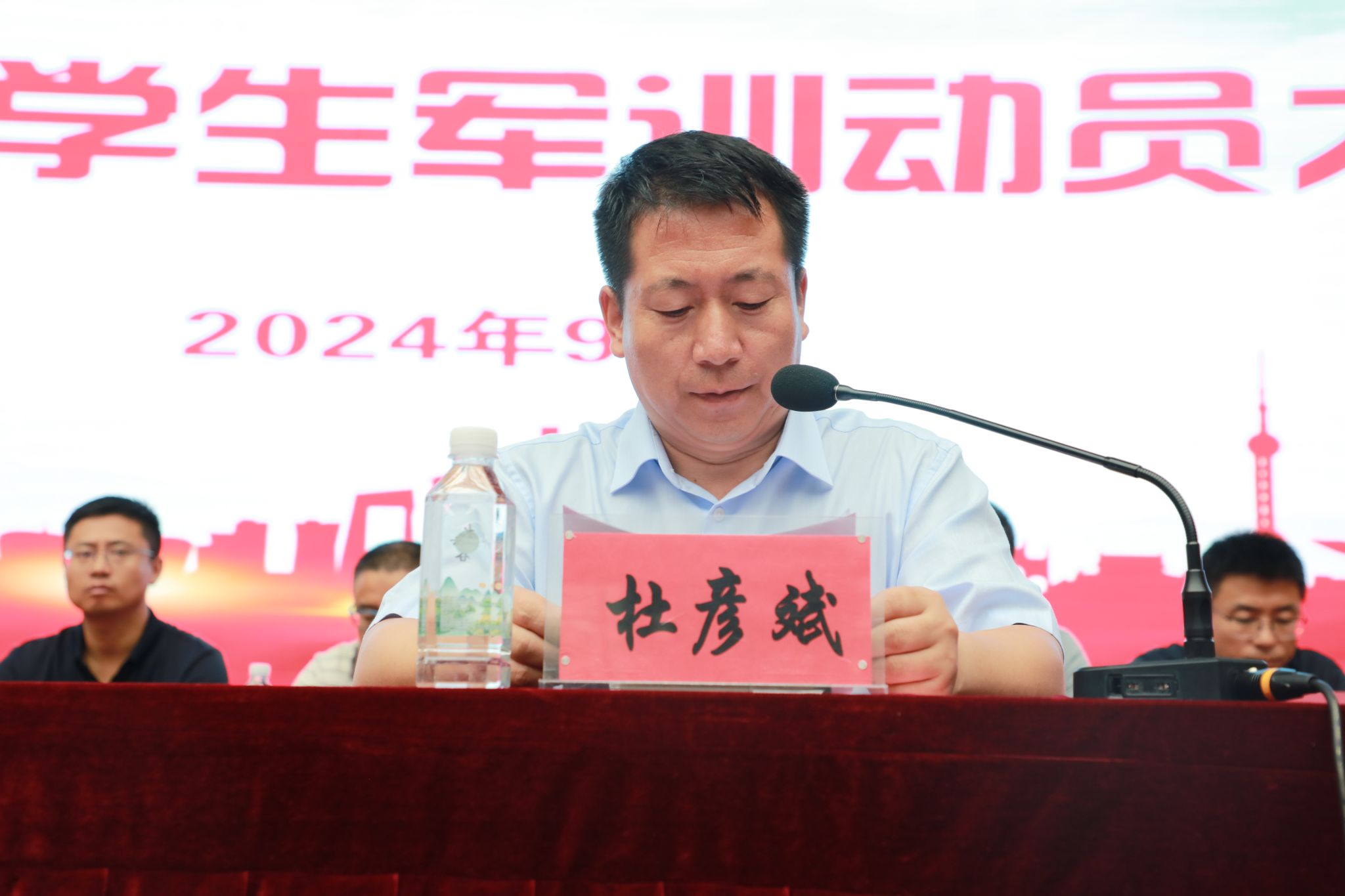 杜彦斌同志宣读了《甘肃建筑职业技术学院关于组建2024级学生军训团的决定》。党星海同志为军训团授旗。