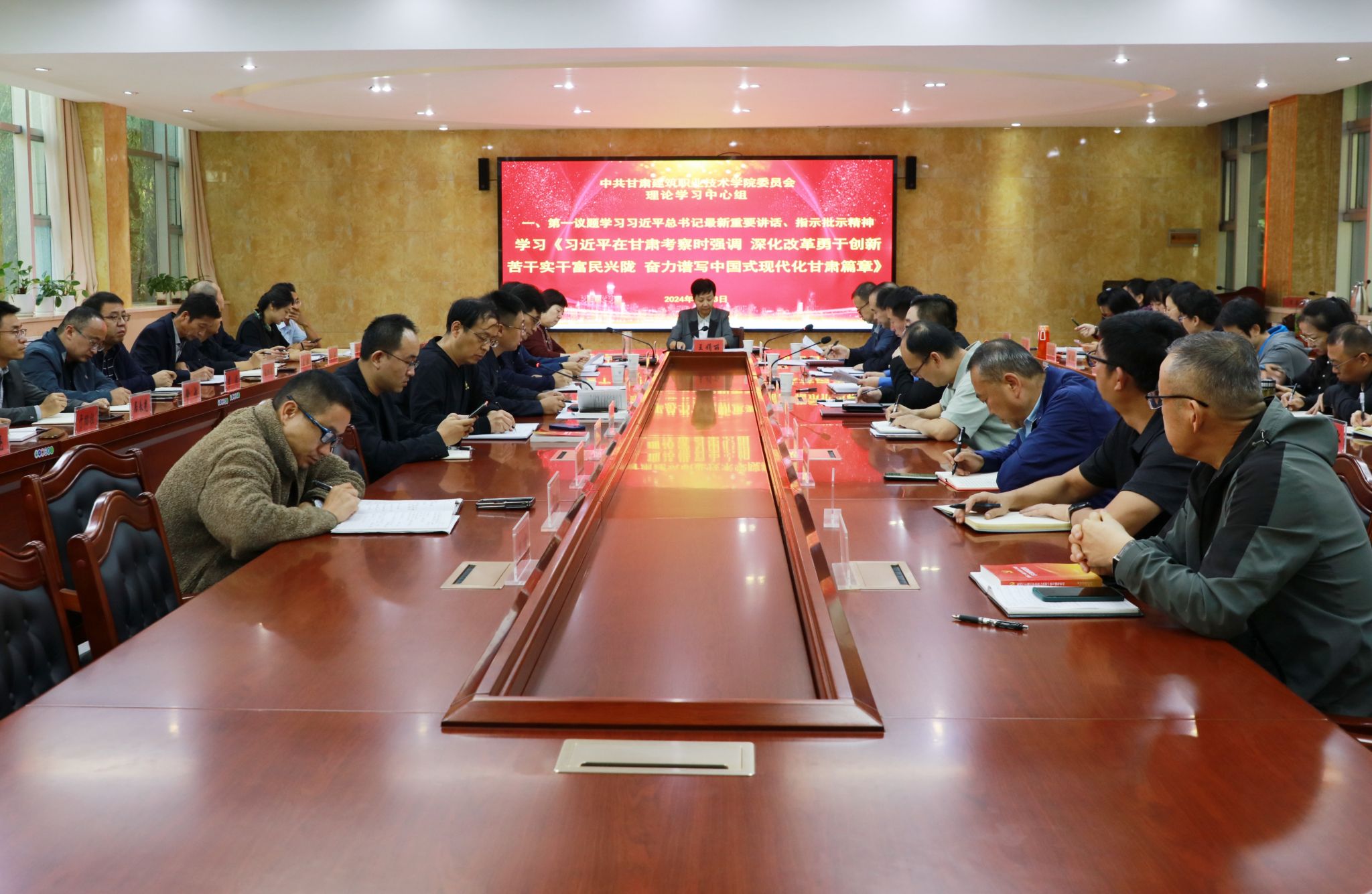 9月23日,甘肃建筑职业技术学院党委理论学习中心组召开专题学习会议。党委书记王娟丽及领导班子,中心组全体成员参加学习会议,会议由党委宣传统战部部长高建兴主持。