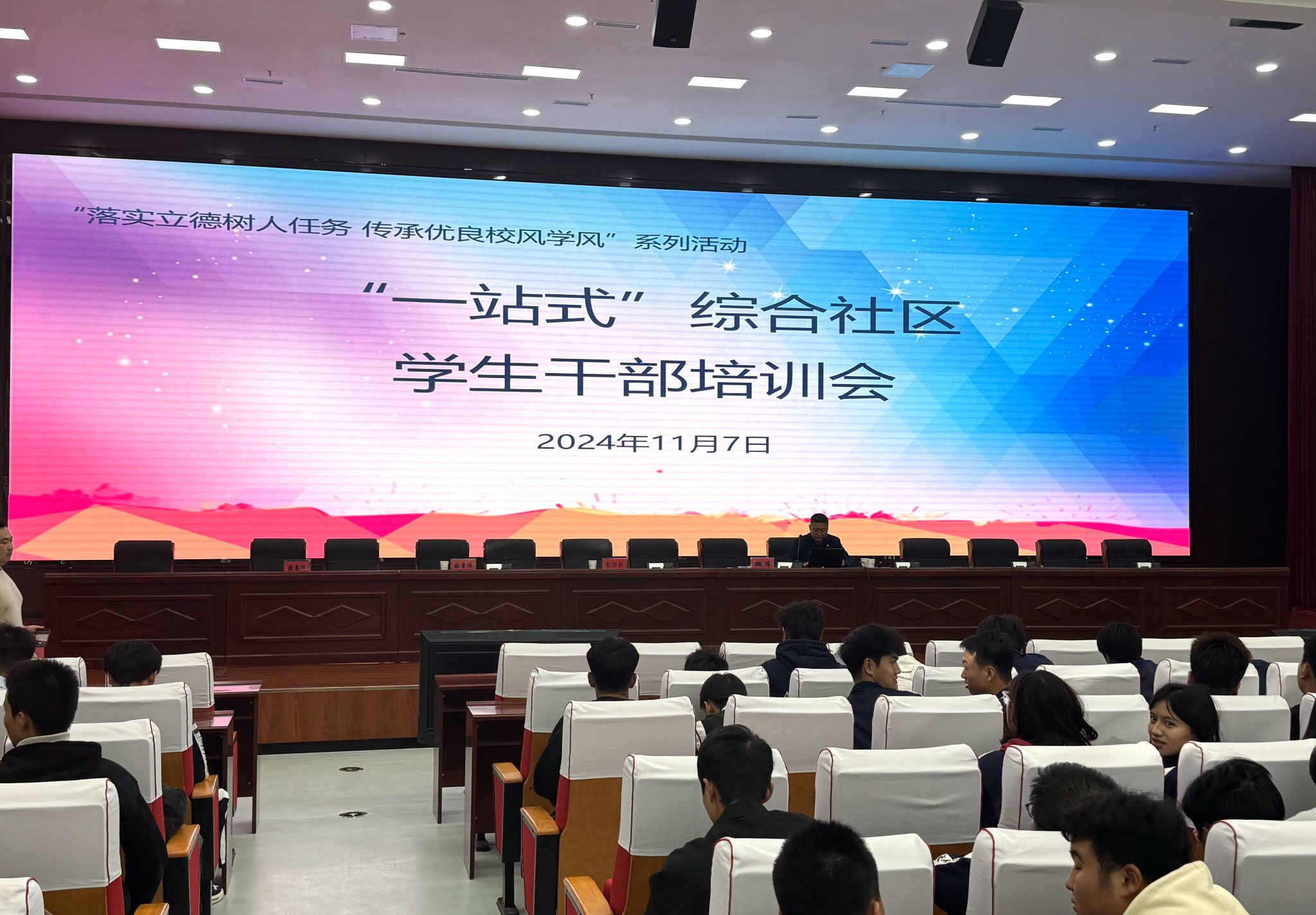 张希玮通过校园行为准则、个人修养与社交礼仪、校园安全与健康管理、社团活动与社会实践、数字化时代的网络行为等方面具体地讲解了学生干部应履行的职责及发挥的作用。