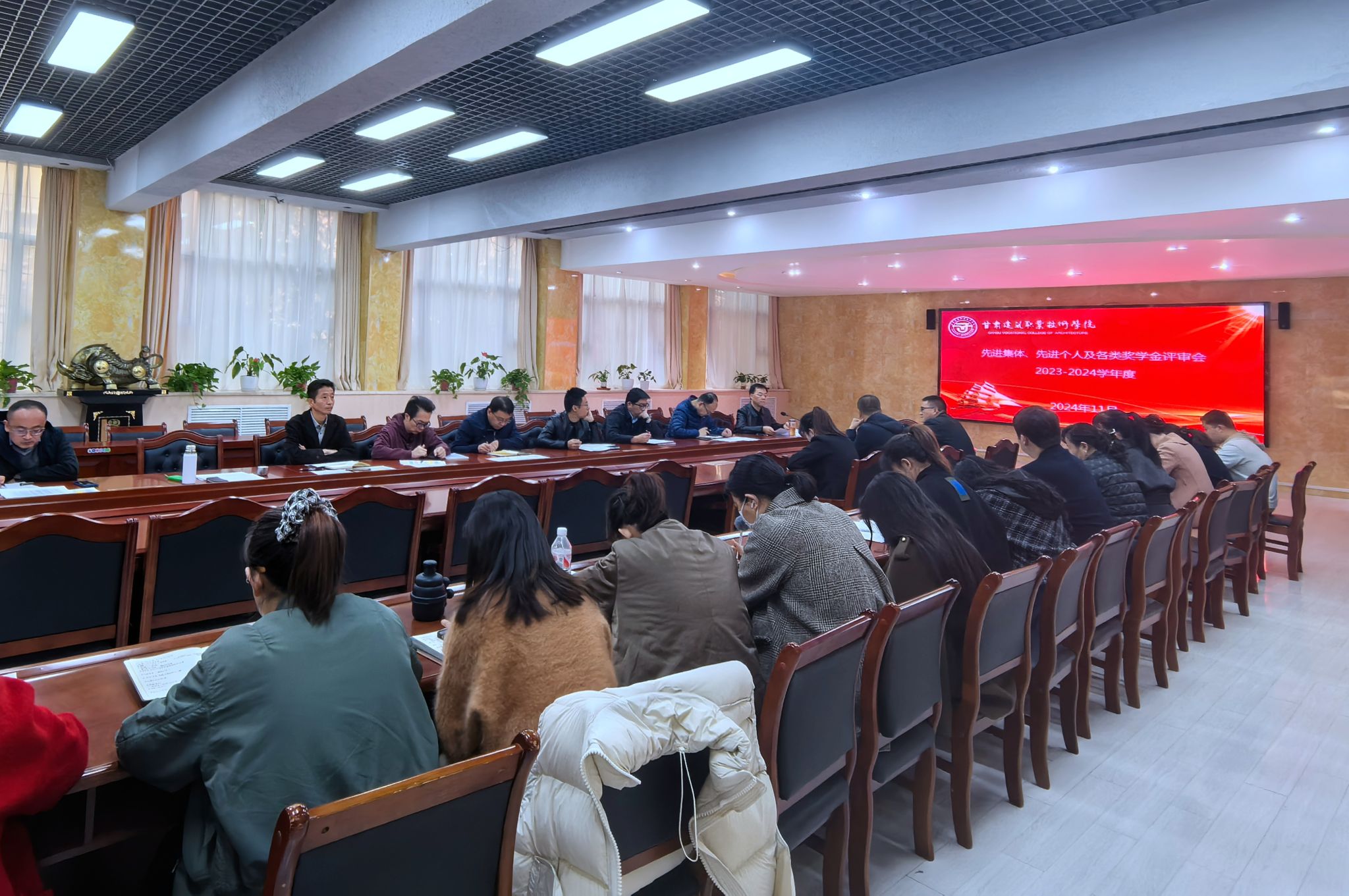 会上,学生工作处处长许庆兵对2023-2024学年度国家奖学金、国家励志奖学金、筑梦奖学金评选及学校各类奖学金、先进班集体、三好学生、优秀学生干部评选评定情况进行了通报,对各类奖助学金名额、金额变化及评定中出现的问题进行了说明。各二级学院党总支书记、学生干事就本学院奖学金评定的相关细节进行了补充,针对评定中出现的问题提出了相应的意见建议。