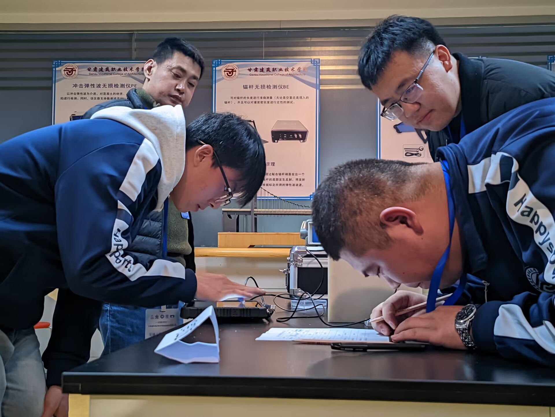 三项赛事共吸引了全校60支参赛队,194名学生参与,为校园注入了浓厚的实践和竞技氛围。在路桥工程无损检测赛项中,选手们结合所学的路桥结构裂缝损害等专业知识及实操技能,在比赛中密切配合,严谨地记录并分析各项参数,依据专业知识与实践经验判断结构内部可能存在的缺陷或隐患。充分彰显了扎实的专业技能功底和认真专注的竞赛态度,展现了高超的无损检测技术和实践运用能力。