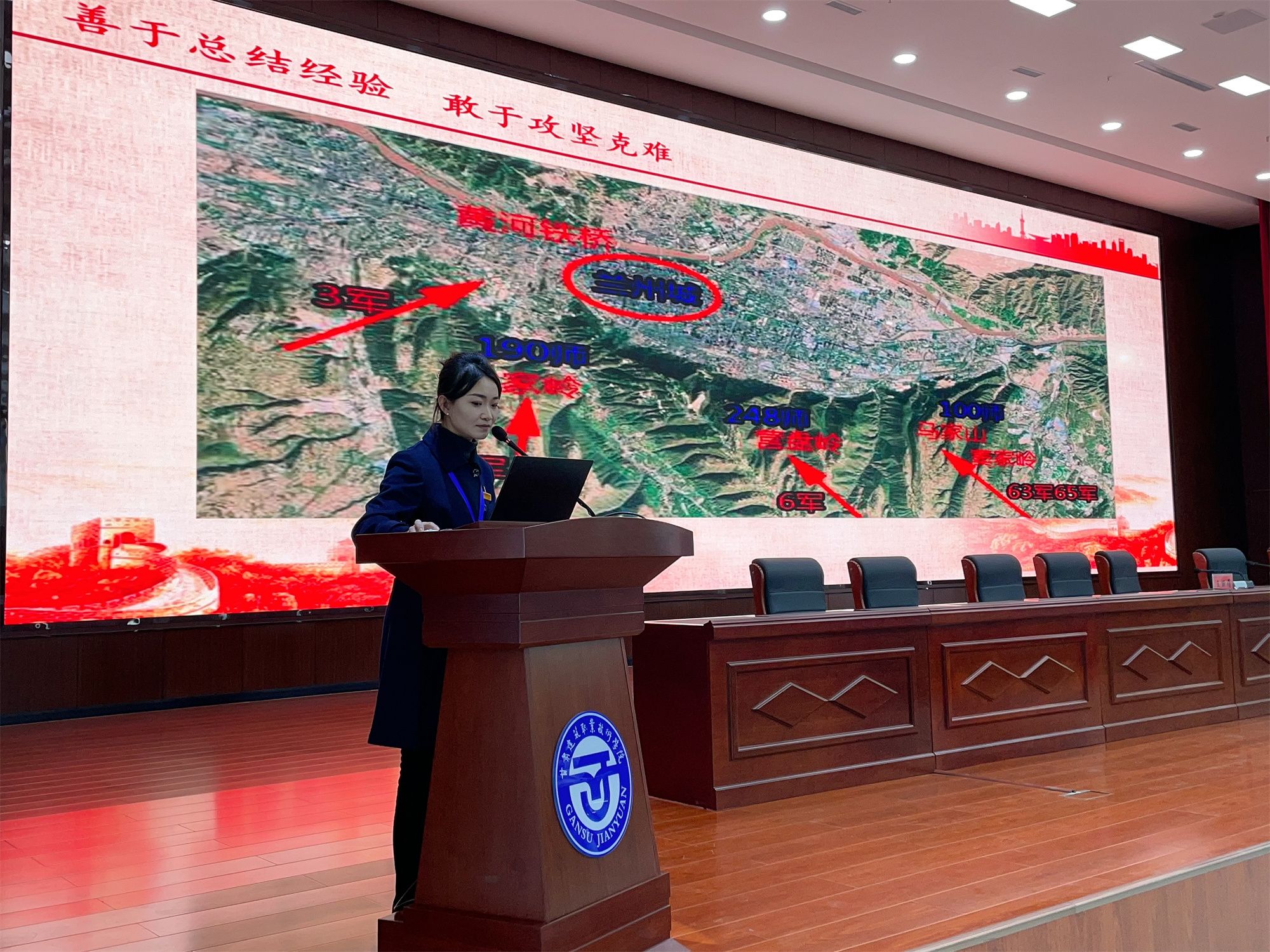 王丽娟围绕“红色精神”主题展开深入的宣讲报告。报告内容涵盖兰州战役的历史背景、战斗过程、英雄事迹以及红色精神在当代社会的时代价值,通过生动的讲述和丰富的视频史料,让参会人员深刻感受红色精神的伟大力量。