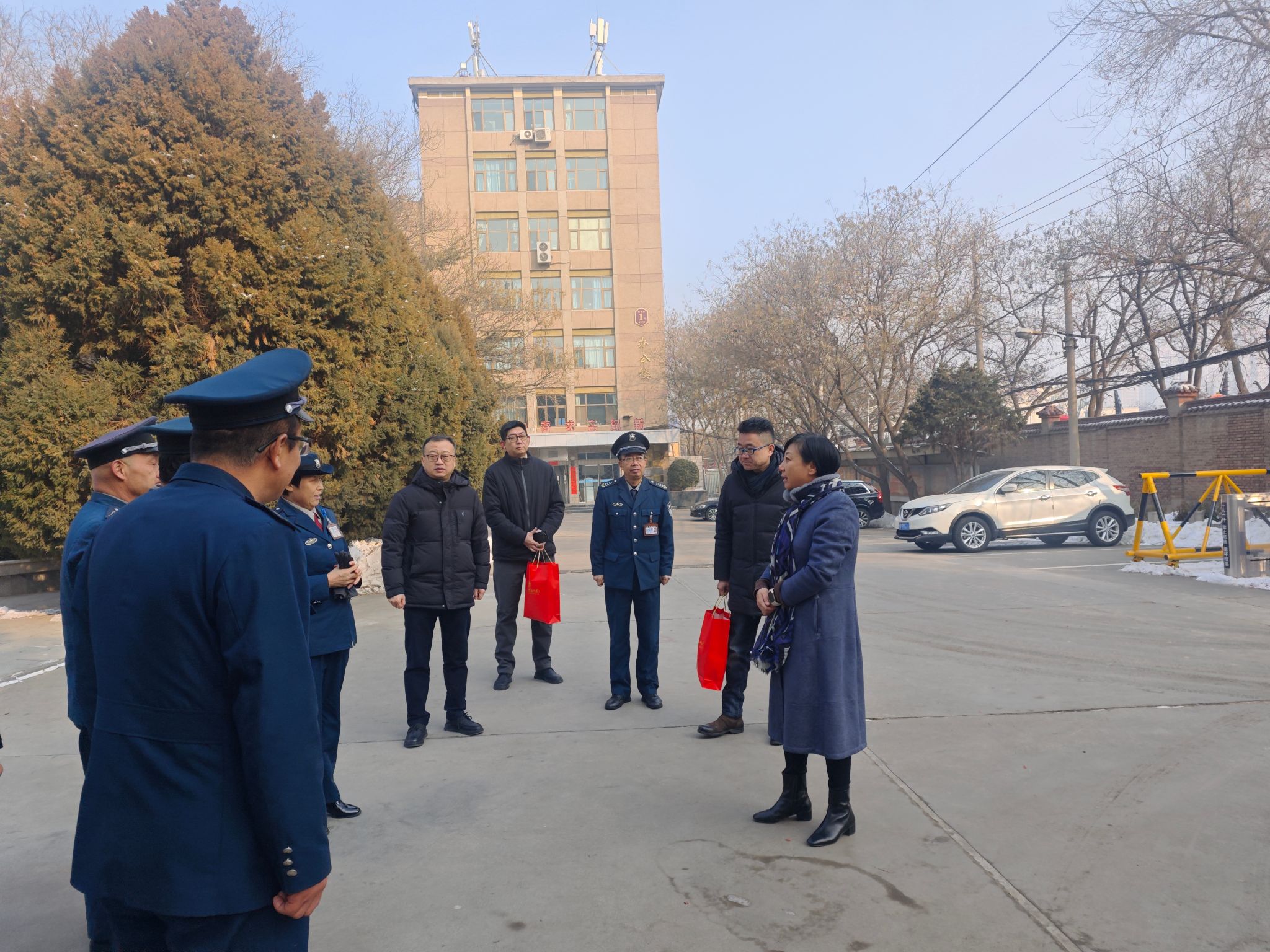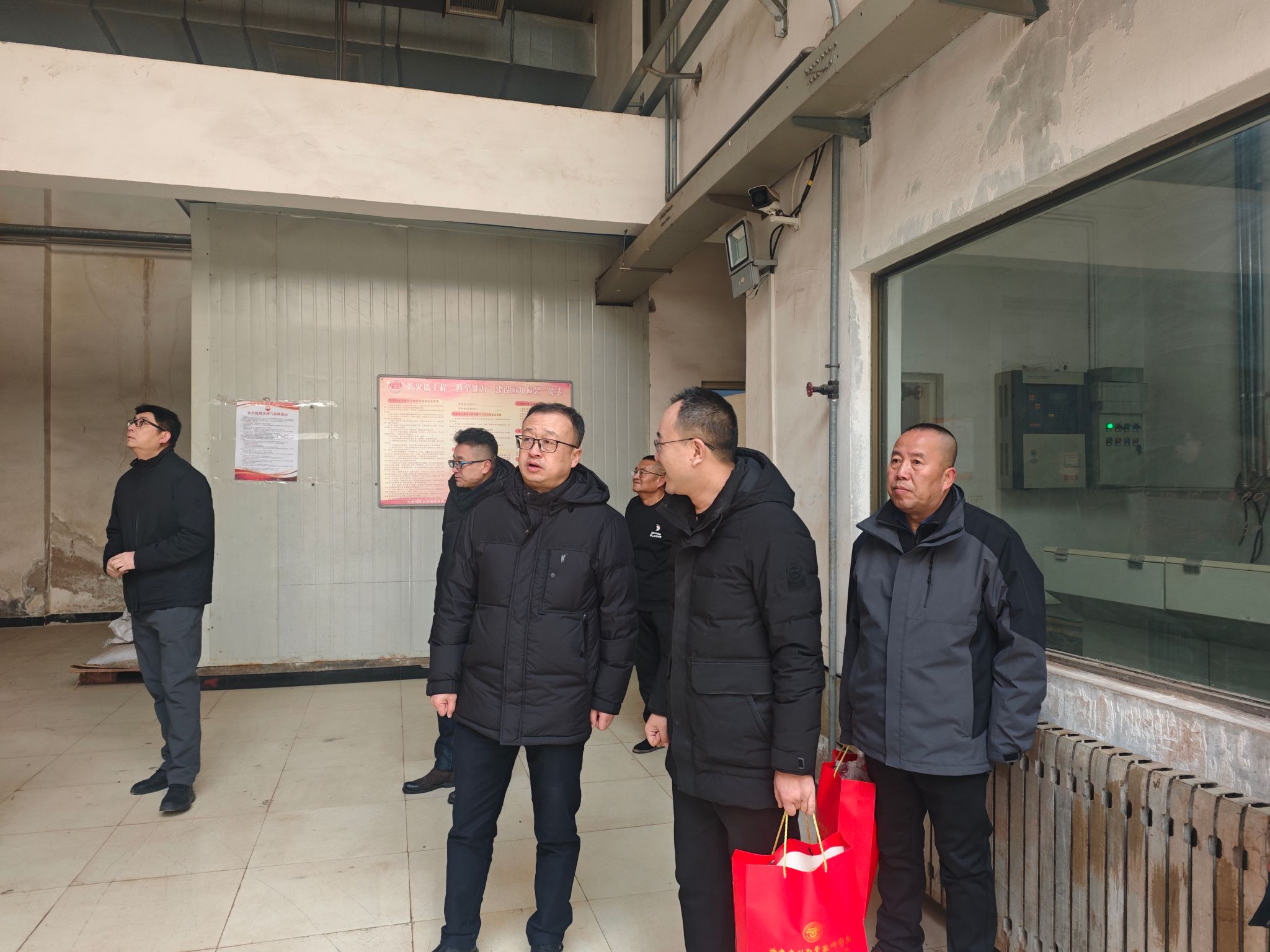 1月29日,甘肃建筑职业技术学院党委书记王娟丽,党委副书记、校长党星海一行慰问了春节期间坚守岗位的值班人员,为他们送上新春祝福,并对寒假期间的安全生产、供暖保障及校园安保工作作出指示。办公室主任黄治学,保卫处处长郝昭,后勤处处长李泰儒等相关人员陪同。