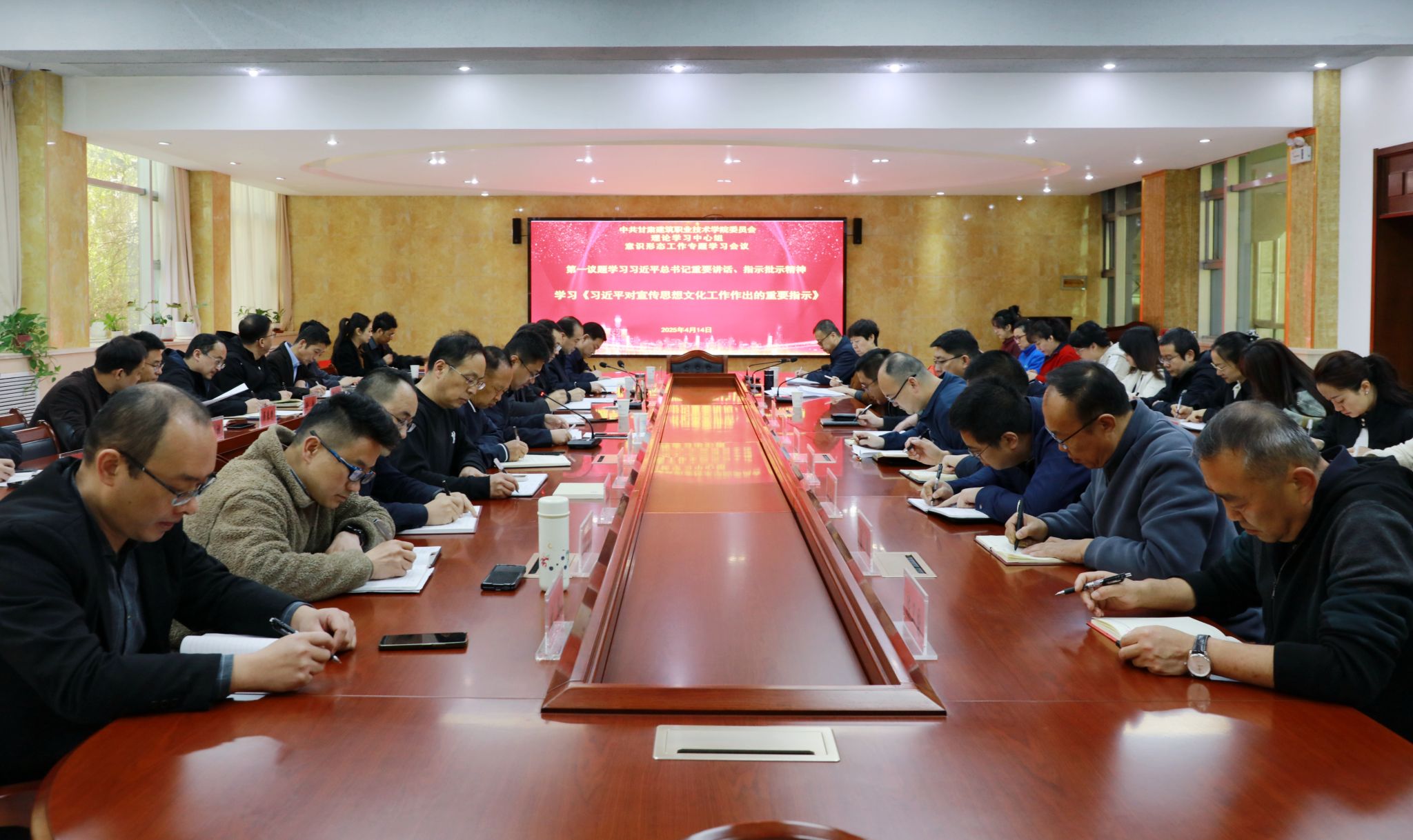 4月14日,甘肃建筑职业技术学院党委理论学习中心组召开专题学习研讨会议。党委副书记、校长党星海及领导班子,中心组全体成员参加学习会议,会议由党委宣传统战部高建兴主持。