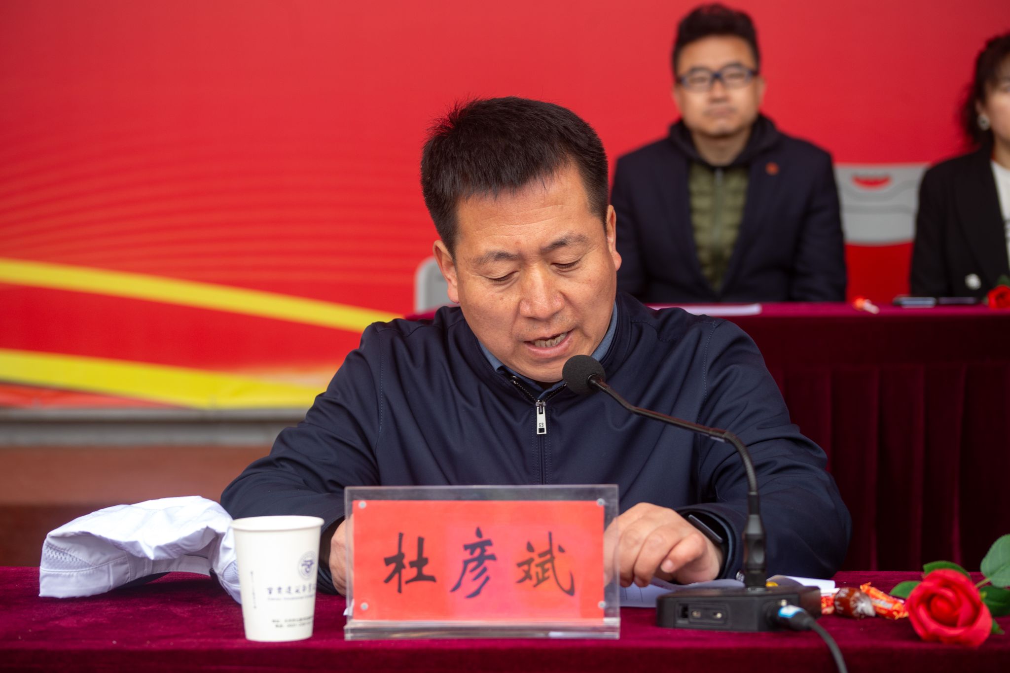 党委委员、纪委书记、监察专员杜彦斌宣读大会须知,强调参赛人员需遵守规则、服从管理,弘扬团结友爱与顽强拼搏的精神。