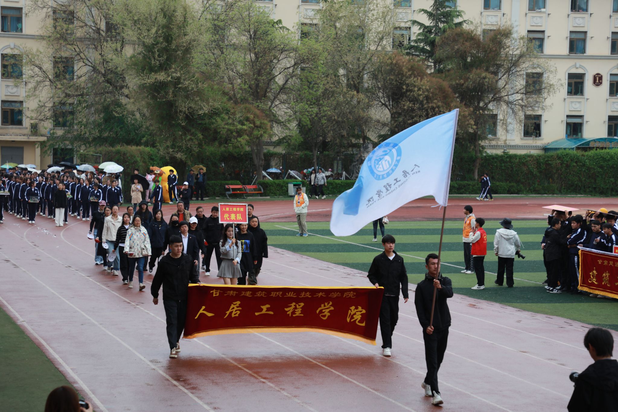 4月27日,甘肃建筑职业技术学院第三十一届田径运动会开幕。党委书记王娟丽及领导班子成员,相关部门负责人与全体师生参加开幕式。开幕式由党委委员、副校长李维敦主持。
