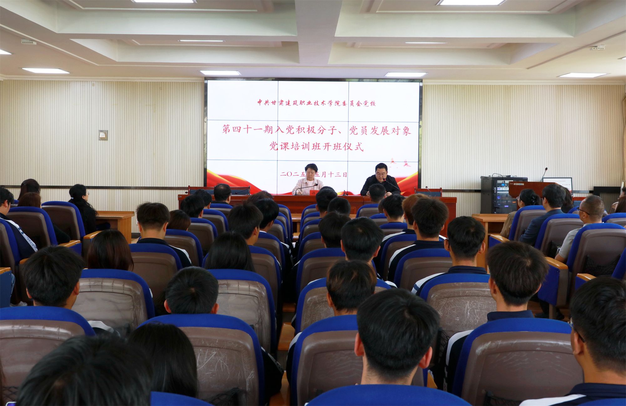 5月13日,甘肃建院举办了第四十一期入党积极分子、党员发展对象培训班开班仪式。学校党委副书记许洁,各二级学院党总支书记、专职组织员,第四十一期入党积极分子以及党员发展对象部分学员参加了开班仪式。组织人事处处长、党委教师工作部、教师发展中心主任崔涛主持仪式。