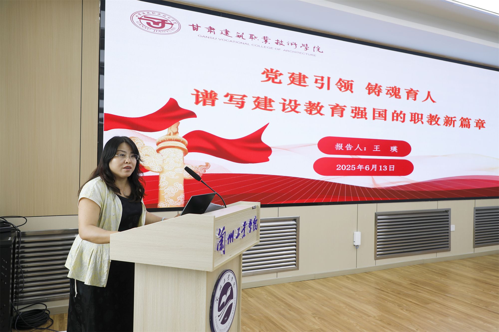 我校马克思主义学院院长王瑛以《党建引领 铸魂育人 谱写建设教育强国的职教新篇章》为题作主旨报告,从职业教育发展概述,立德树人、德技并修,谱写建设教育强国的职教新篇章三个方面展开,深入阐述了如何将习近平新时代中国特色社会主义思想融入职业教育,如何通过党建引领实现思政教育与专业教育的有机融合,为培养德智体美劳全面发展的社会主义建设者和接班人提供了新思路、新方法。