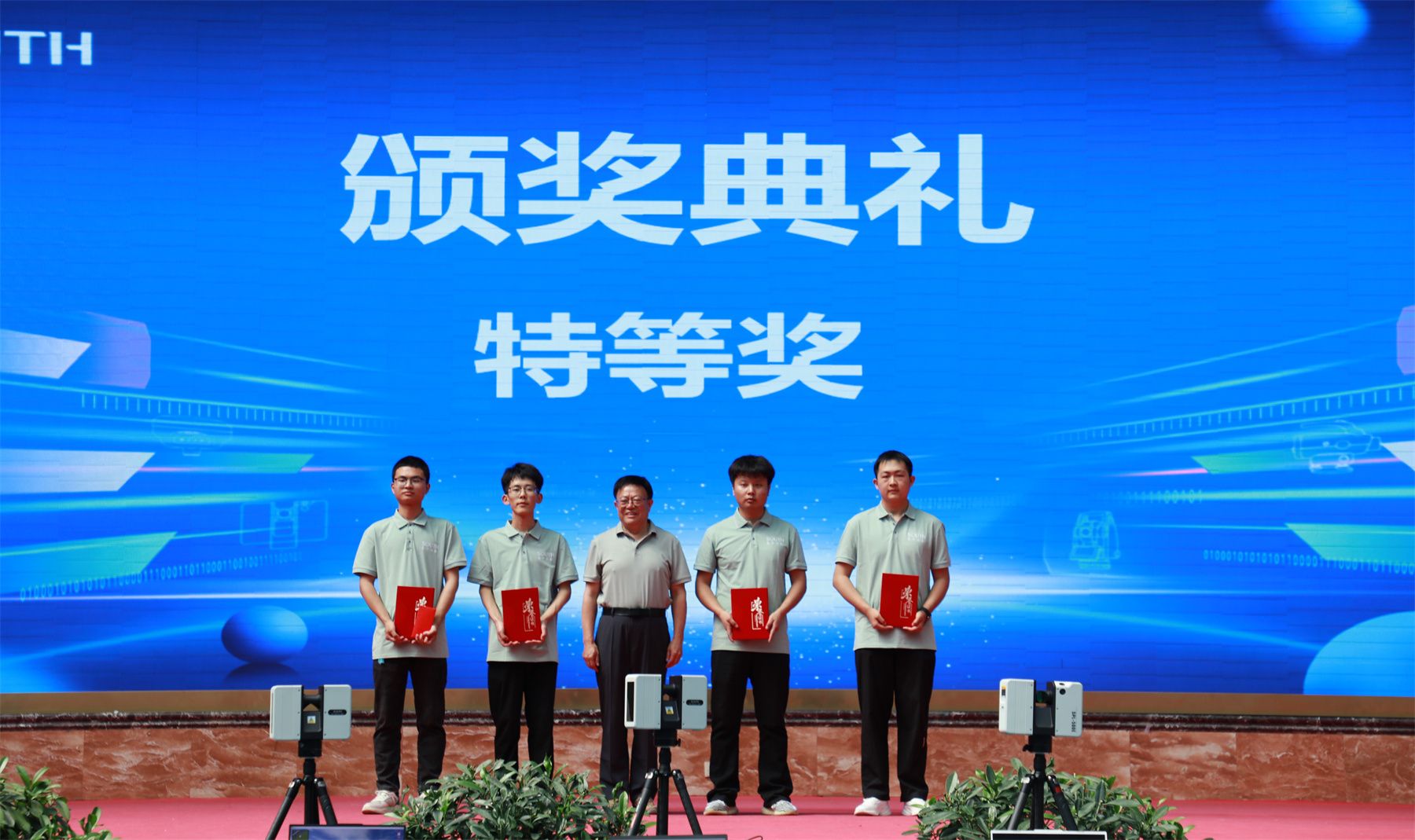 随后,兰州资源环境职业技术大学党委委员、副校长、大赛裁判长王利军宣布开赛。本次大赛,共有来自10所学校的10支队伍、40名参赛选手通过应用虚实结合的全站仪、RTK、无人机、架站式三维激光扫描仪等在元宇宙智能测绘场景中完成对目标测区的数字测图、无人机古建筑寻宝及古建筑点云三维建模任务。经过激烈角逐,大赛最终评选出特等奖1项、一等奖2项及二等奖3项。我校闫德明、万应玲老师指导的“智绘先锋队”获特等奖。