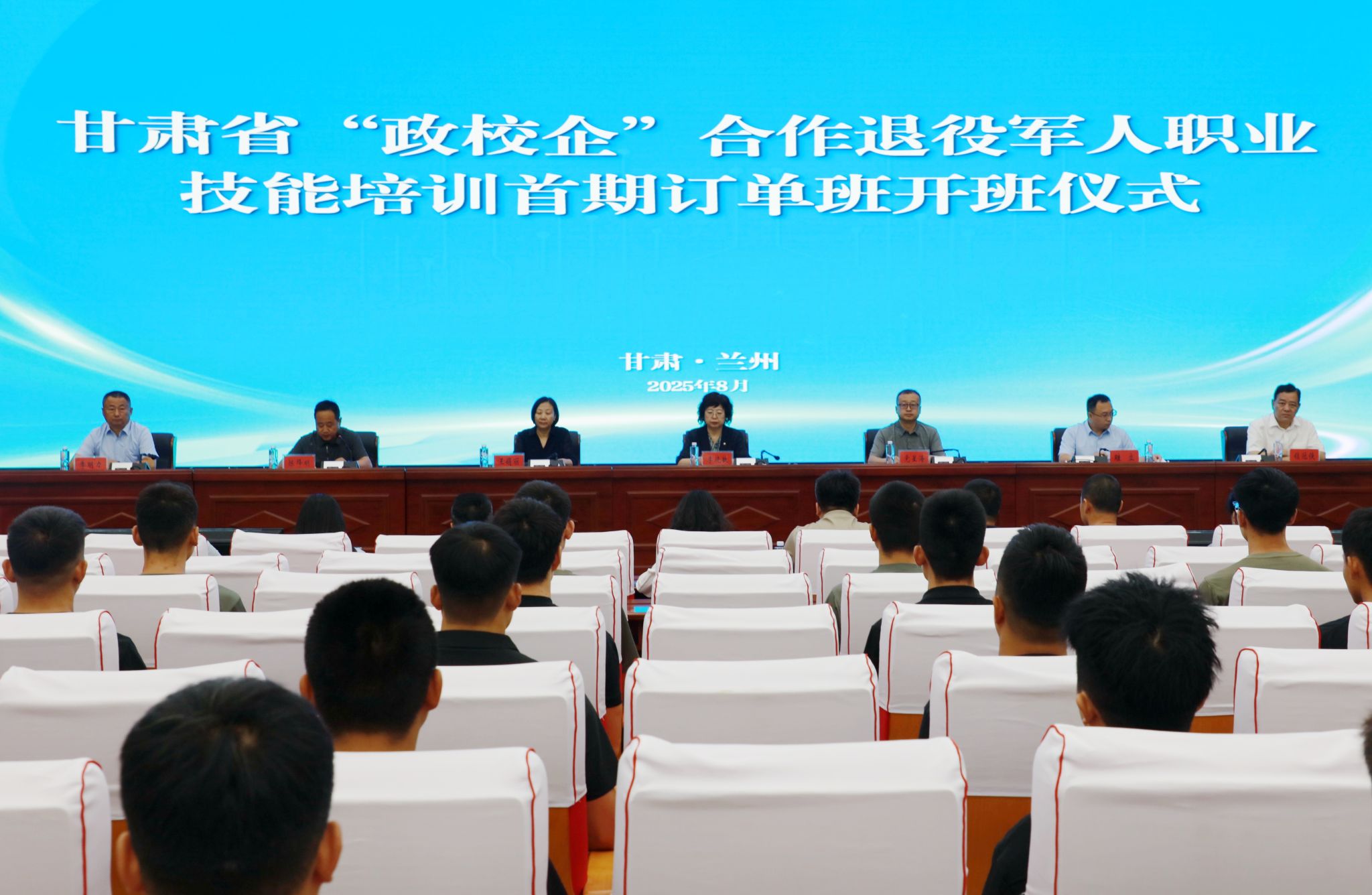 为深入贯彻落实《退役军人保障法》和《关于全面做好退役士兵教育培训工作的指导意见》相关要求,协同推进退役军人高质量就业,8月14日,由省退役军人事务厅主办,我校负责承办,中国核工业第五建设有限公司负责就业安排的甘肃省“政校企”合作退役军人职业技能培训首期订单班开班仪式在我校举行。省退役军人事务厅二级巡视员李晓敏,我校党委书记王娟丽,党委副书记、校长党星海,党委委员、副校长锁冠侠,中国核工业第五建设有限公司人力资源部副主任眭立及相关负责人,参训学员代表参加了开班仪式。省退役军人事务厅就业创业处陈降明主持仪式。