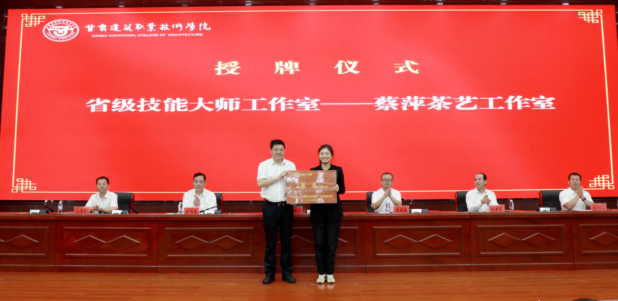 学校领导依次为获得先进集体奖、突出贡献奖、优秀教师奖、先进教育工作者奖、优秀辅导员奖的集体和个人以及光荣从教30年的教师颁发了证书。随后,赵彦军为省级技能大师工作室蔡萍茶艺工作室授牌。