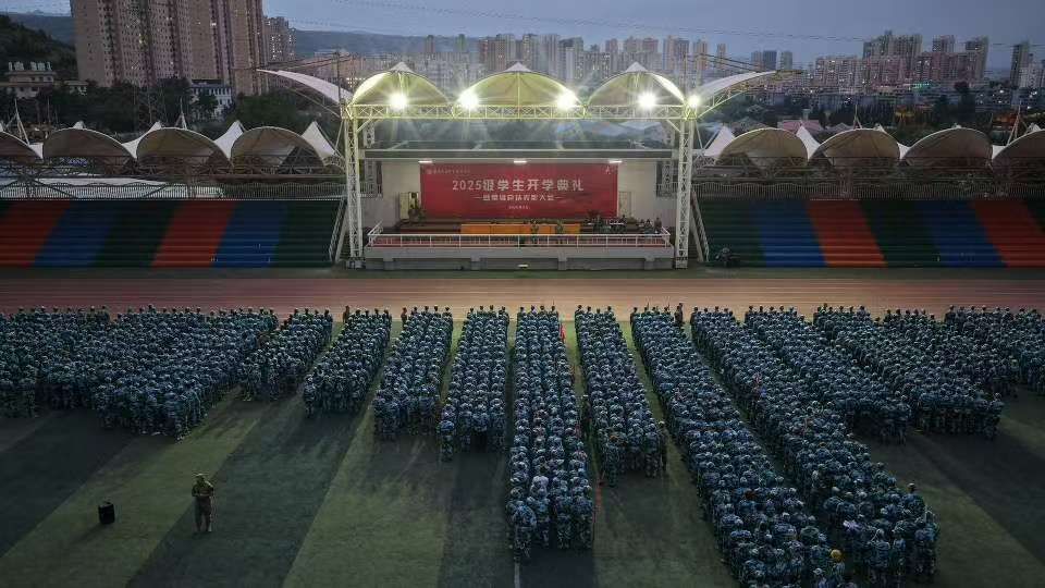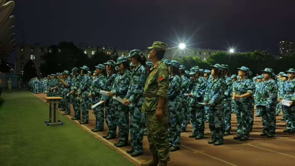 9月11日晚,2025级学生“唱响祖国 献礼国庆”军训歌咏比赛在学校运动场火热举行。