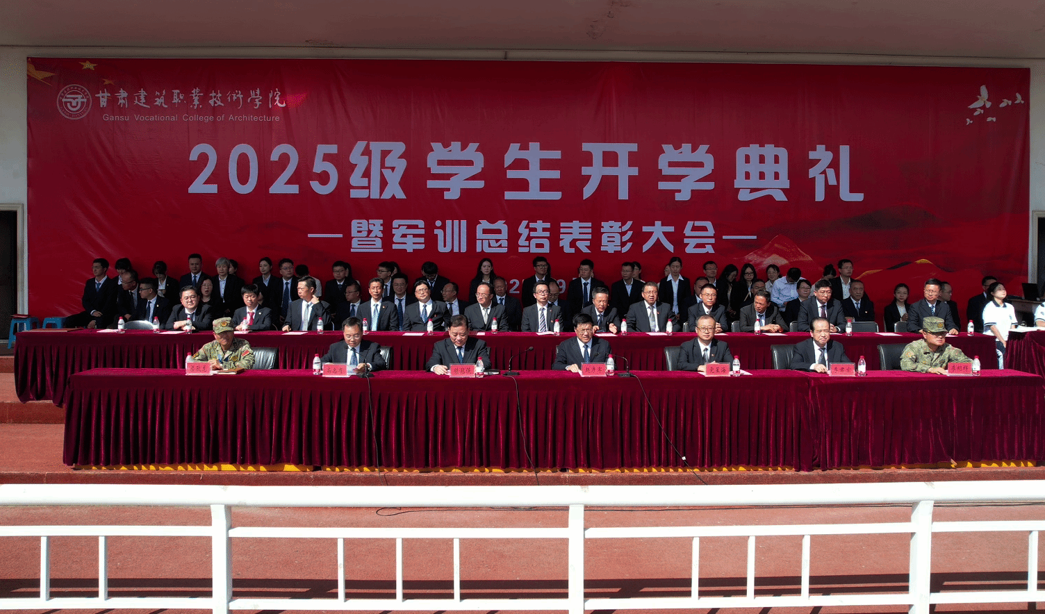 9月14日,甘肃建筑职业技术学院2025级学生开学典礼暨军训总结表彰大会成功举行。党委书记赵彦军及领导班子成员,兰州市警备区动员处领导李明辉,学校各二级学院、相关部门负责人,2025级辅导员,承训教官以及全体级新生参加。党委委员、副校长高忠有主持大会。