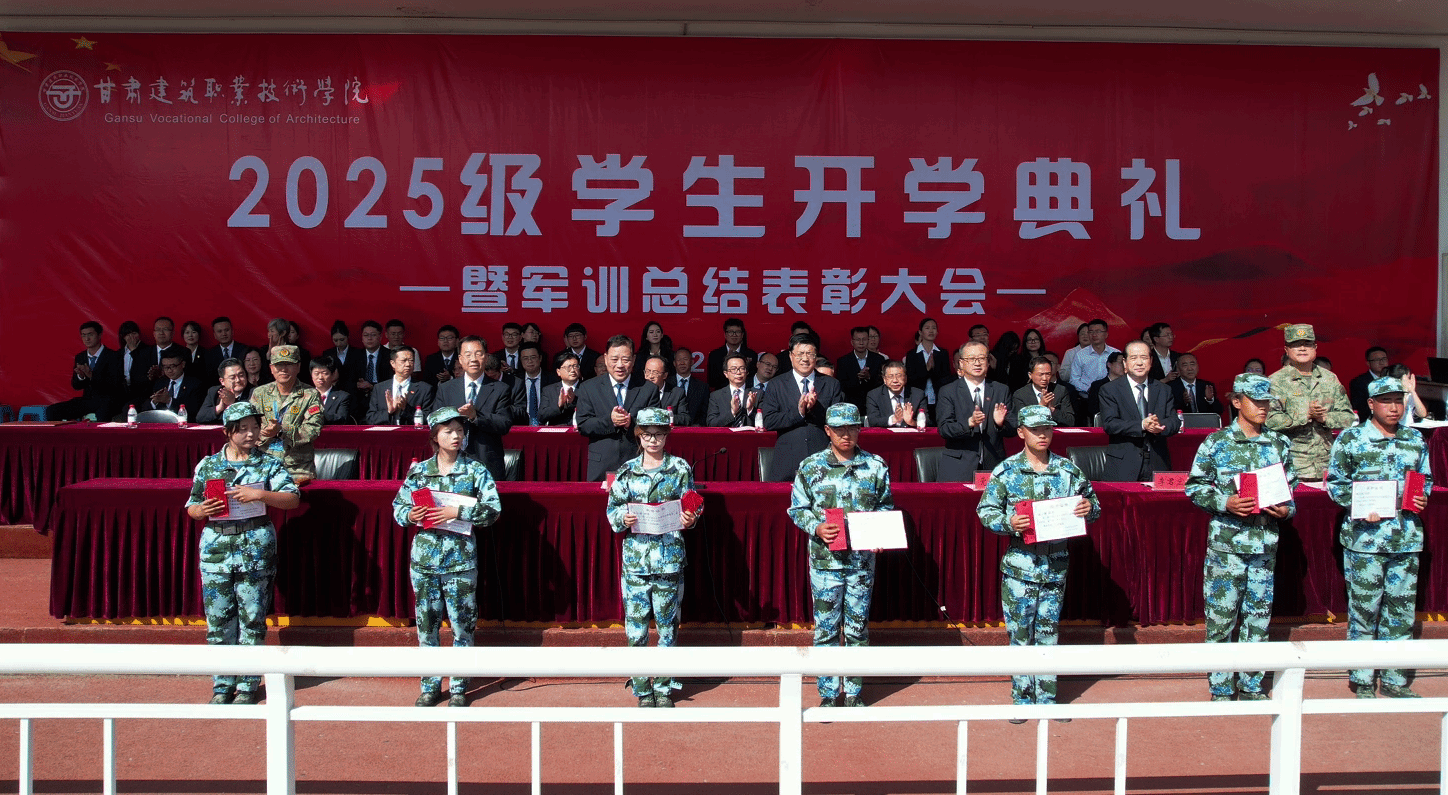 最后,全体师生共唱歌曲《我和我的祖国》。至此,甘肃建筑职业技术学院2025级学生开学典礼暨军训总结表彰大会圆满结束。