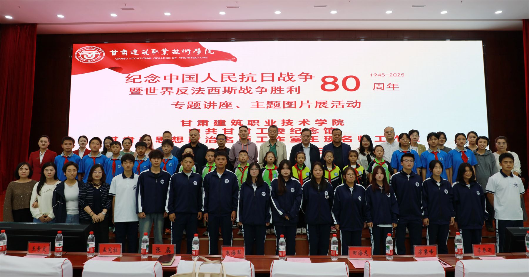 为深入学习习近平总书记在纪念中国人民抗日战争暨世界反法西斯战争胜利80周年大会的重要讲话精神,充分发挥思政课“立德树人”作用,扎实推进大中小学思政课一体化改革创新,打造“大思政课”品牌,9月25日下午,由我校马克思主义学院、甘肃省思政课王瑛名师工作室主办的“纪念中国人民抗日战争暨世界反法西斯战争胜利80周年” 专题讲座与主题图片展活动在学院多功能厅、文化广场举行。原八路军兰州办事处纪念馆馆长、兰州西路军研究会会长朱永光教授,甘肃建筑职业技术学院党委委员、副校长锁冠侠,甘肃工委纪念馆讲解员王素文、孟宪桂,兰州市第八十三中学副校长朱海军,晏家坪第二小学党支部副书记田海龙及我校相关部门负责人、学生代表参加了此次活动。活动由马克思主义学院院长王瑛主持。