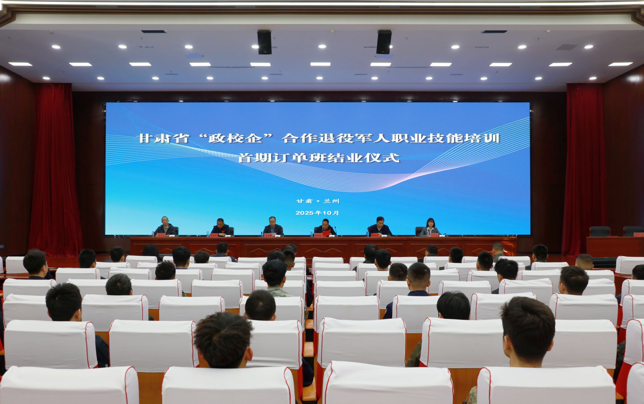 10月13日,甘肃省“政校企”合作退役军人职业技能培训首期订单班结业典礼在我校举行。我校党委副书记、校长党星海,党委委员、副校长锁冠侠,甘肃省退役军人事务厅就创处处长陈降明,中核五公司甘肃项目部党委副书记、项目行政经理季明力及相关负责人,参训学员参加了结业仪式。省退役军人事务厅就业创业处一级调研员温玉林主持仪式。