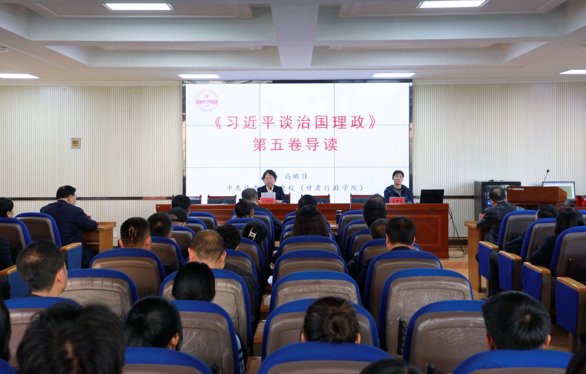 为持续推动学习贯彻习近平新时代中国特色社会主义思想走深走实,根据省委教育工委统一安排,10月30日,我校举办《习近平谈治国理政》第五卷专题宣讲活动,邀请省委讲师团成员、中共甘肃省委党校(甘肃行政学院)校(院)委委员、教务处处长高璐佳教授作专题宣讲。我校领导班子成员,全体中层干部,各党总支、党支部书记,师生代表参加。宣讲由党委副书记许洁主持。