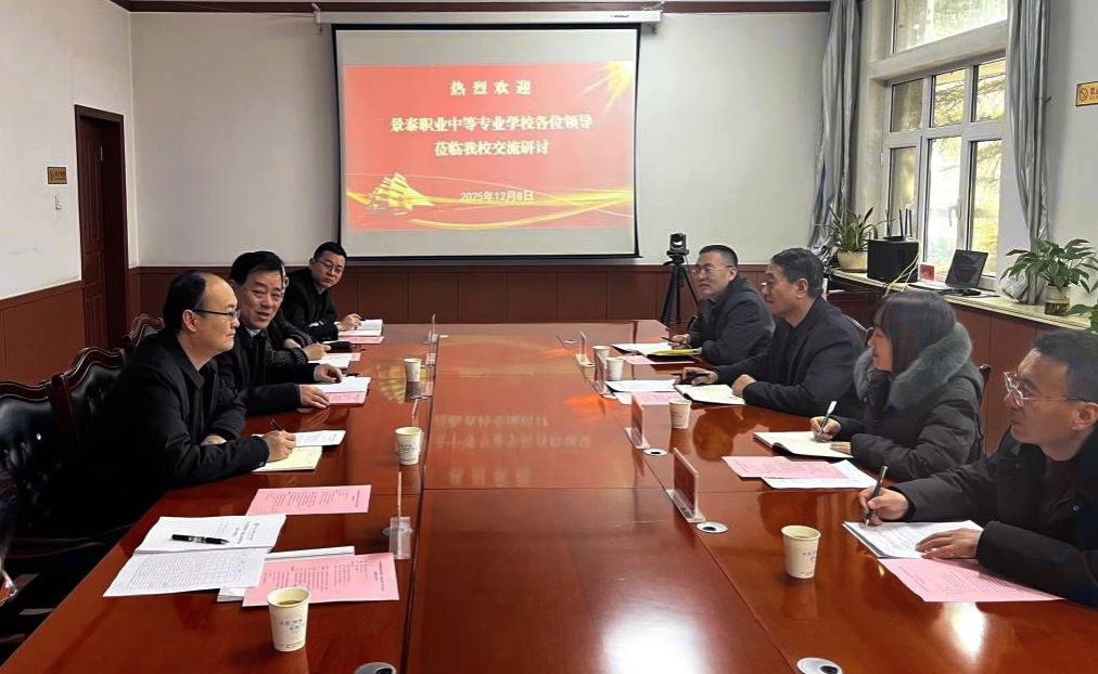 12月8日上午,景泰职业中等专业学校校长范旭涛,党总支书记曹龙,副校长杨文俊,招就办主任邓建生一行到访我校开展交流研讨。党委委员、副校长锁冠侠,相关部门负责人参加交流研讨。