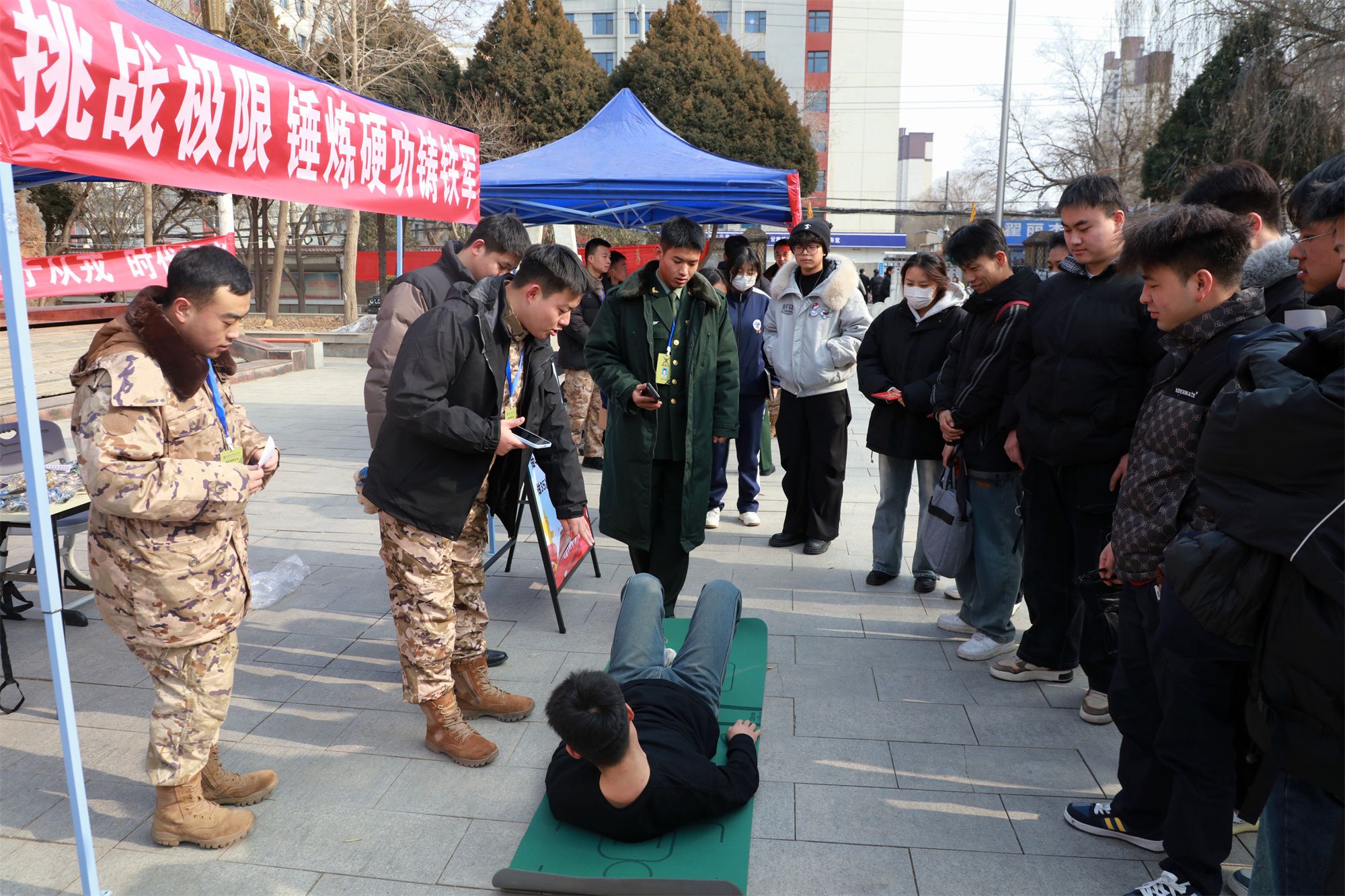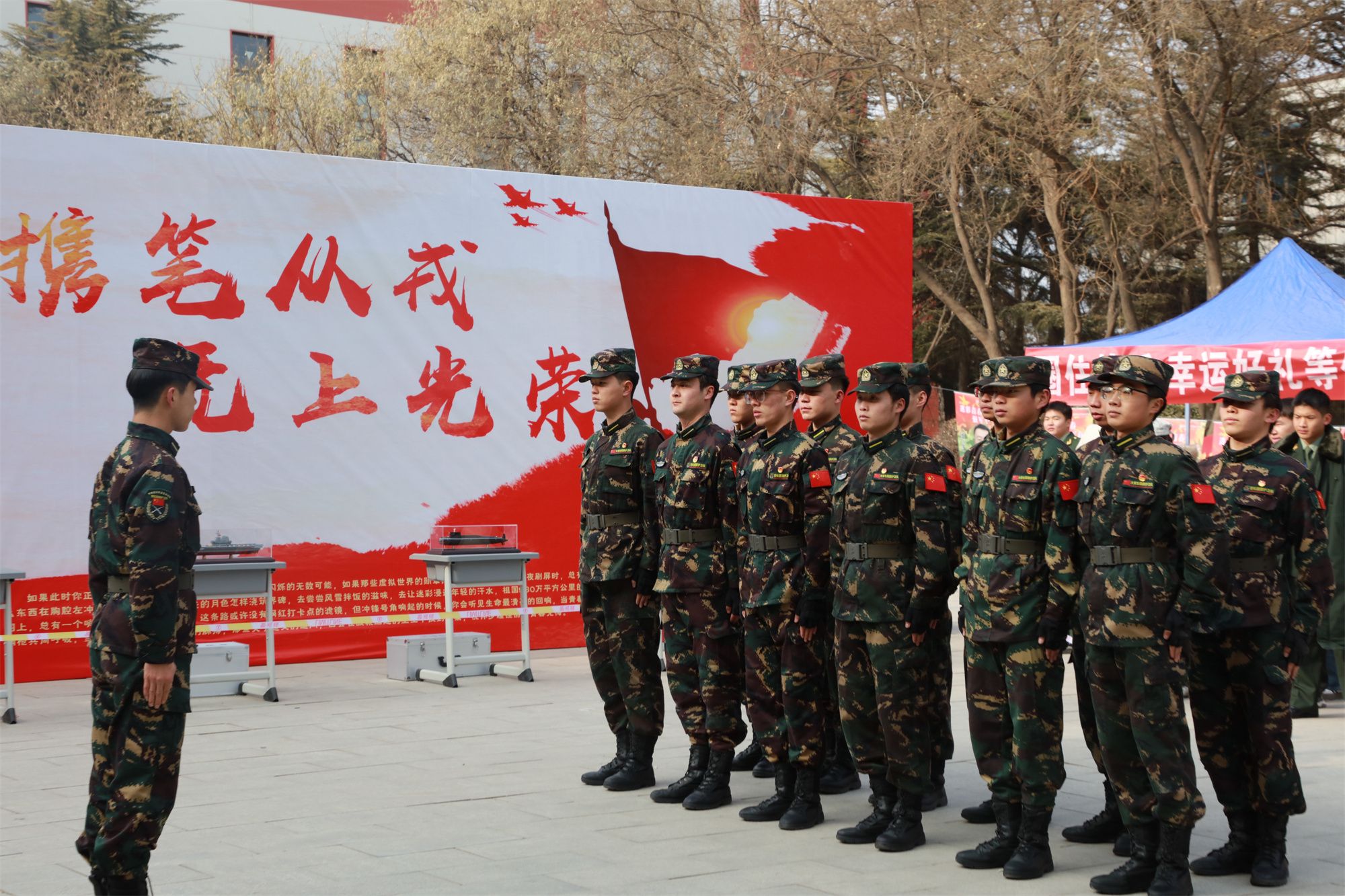 会后,开展了征兵宣传拓展活动,在学校文化广场设置了六个融合军旅特色与趣味挑战的互动游戏环节,通过参与模拟射击、战场救护、体能挑战等游戏,让大家直观感受了军事技能的魅力与军营文化的内涵。活动吸引了同学们踊跃参与,现场气氛热烈。