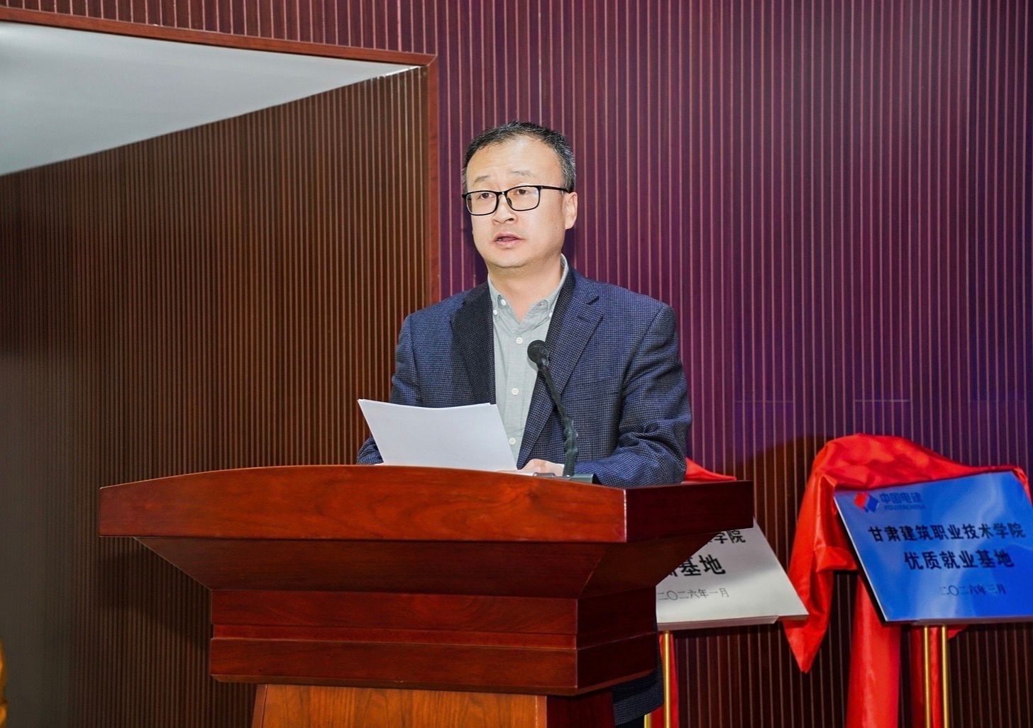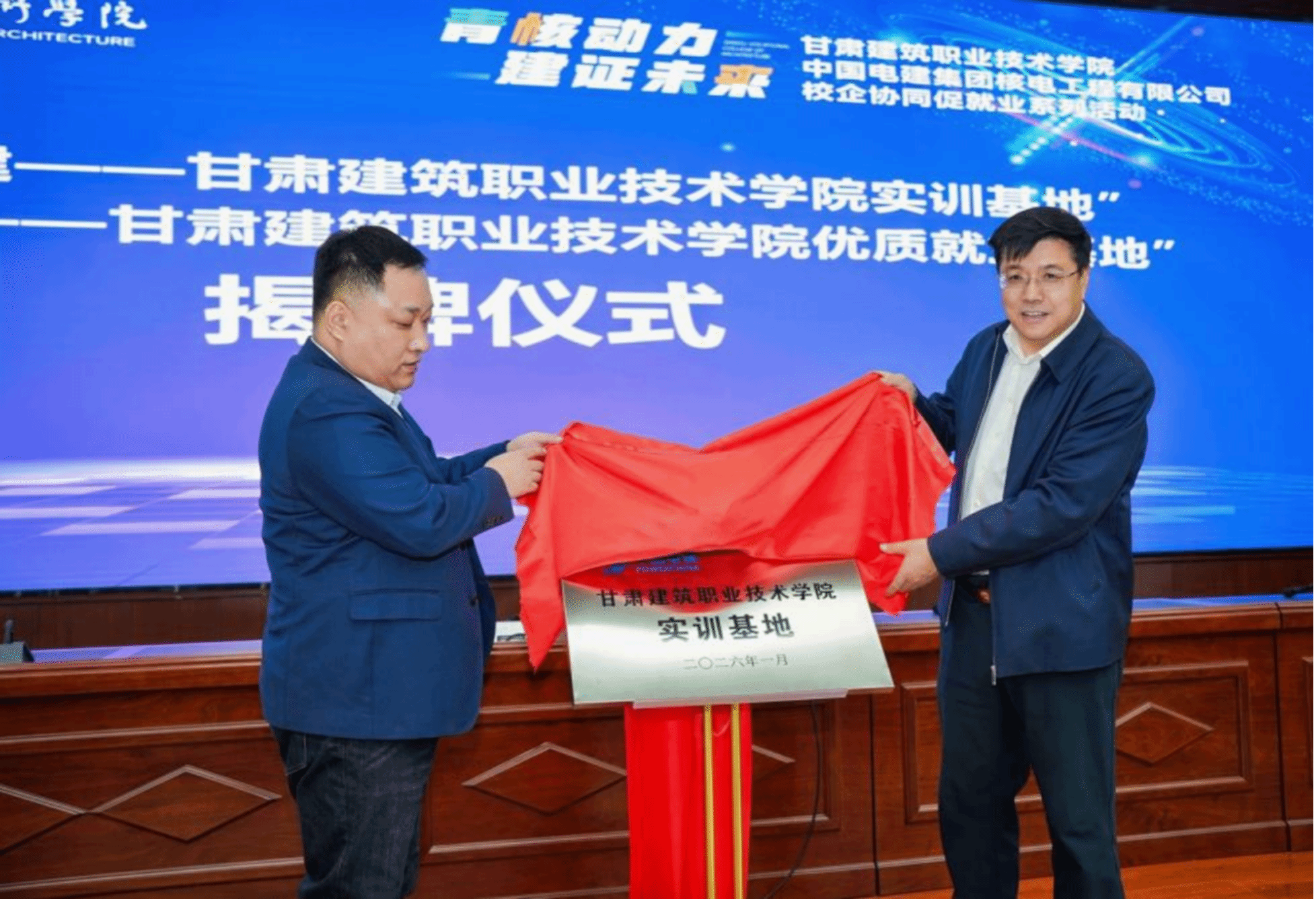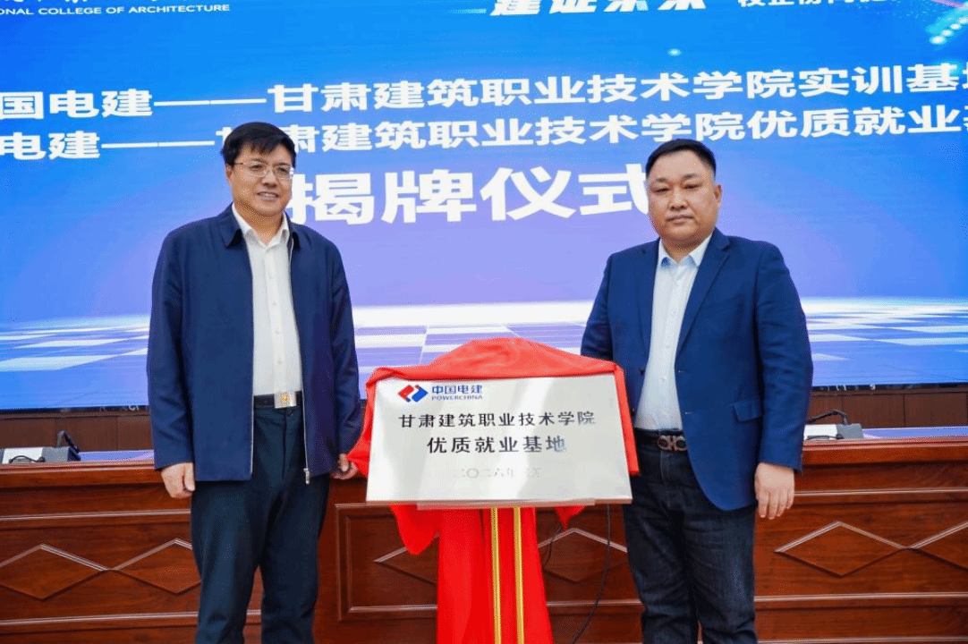 活动中,赵彦军与刘大宾共同为“中国电建——甘肃建筑职业技术学院实训基地”和“中国电建——甘肃建筑职业技术学院优质就业基地”揭牌,标志着校企合作迈入更加系统、深入的新阶段。