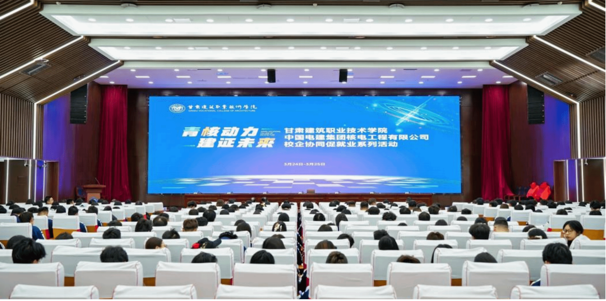 3月24日,甘肃建筑职业技术学院与中国电建集团核电工程有限公司校企协同促就业系列活动成功举办。学校党委书记赵彦军及领导班子成员、中国电建核电公司总经理助理、战略与投资管理部主任刘大宾等企业领导、学校相关部门负责人、各学院就业干事及全体辅导员齐聚一堂,探求产教融合新路径,共话协同育人新未来。学校党委副书记、校长党星海主持活动。