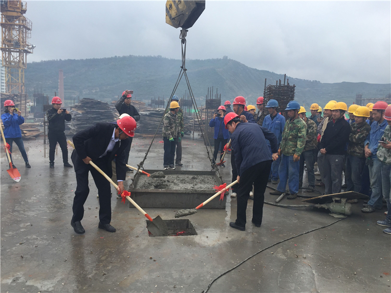 当日上午10点28分,参建各方及学院相关领导共170多人共同见证了这一重要时刻。基建处李贵文处长主持仪式,学院党委副书记、纪委书记王继伟代表学院发表了热情洋溢的讲话,他对项目主体顺利封顶表示热烈祝贺,对各参建单位的辛勤付出表示衷心的感谢,对奋战在一线的建设者们致以诚挚的慰问。要求大家继续发扬团结协作、顽强拼搏的精神,坚持不懈,不断进取,确保工程圆满完工。施工方代表甘肃一建八分公司隋书记、监理方代表兰州开泰监理公司杨总监分别介绍了工程施工情况及质量情况,他们表示,实训大楼从建设起就受到各单位高度重视,严格管理,精心施工,确保交付保质保量的精品工程。