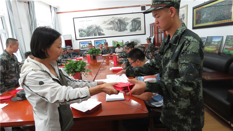 党委书记、院长王娟丽向新兵代表发放了纪念品