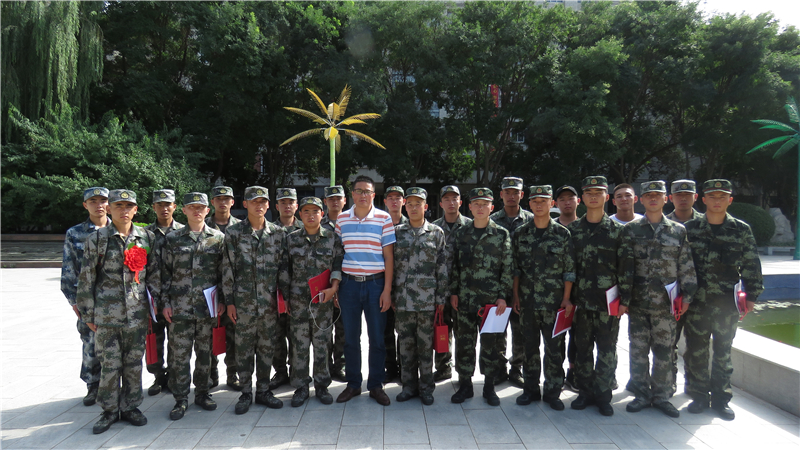 学生处副处长许庆兵与新兵合影