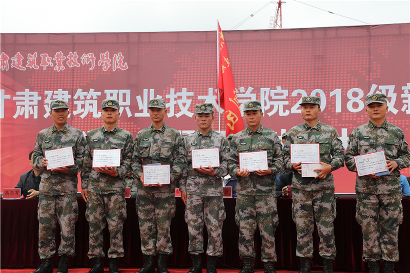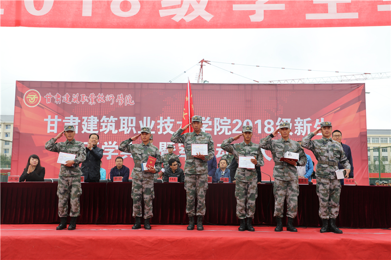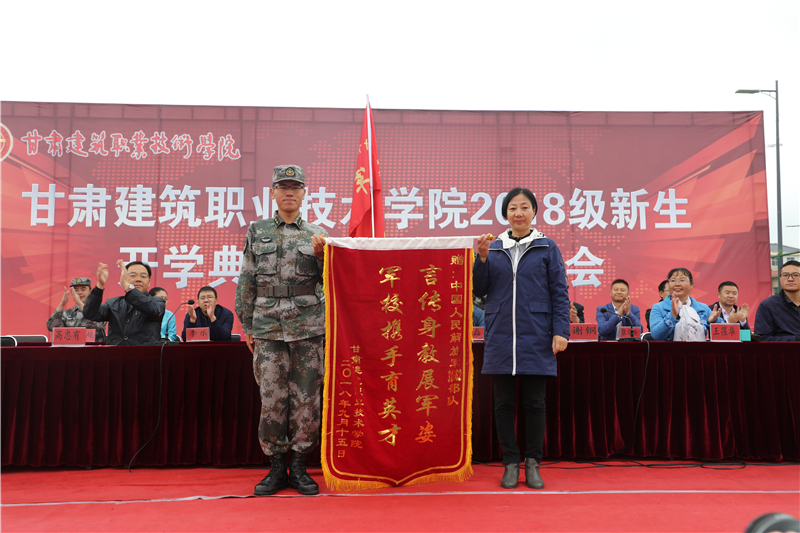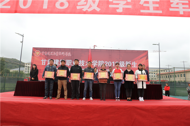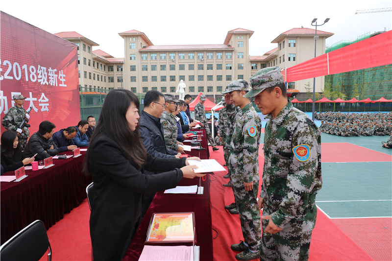 表演结束后,学院学生工作处处长高忠有宣读了《关于表彰2018级学生军训先进集体及先进个人的决定》,出席会议的领导为获奖集体和个人颁发了荣誉证书与奖品,学院党委书记、院长王娟丽代表学院向中国人民解放军31662部队赠送了“言传身教展军姿,军校携手育英才”的锦旗。随后,2018级参训学生代表做了热情洋溢的发言,军训团团长张伟强在讲话中向所有支持和配合本次军训工作的领导和老师表示衷心的感谢,对全体2018级同学在军训中取得的优异成绩表示热烈的祝贺。