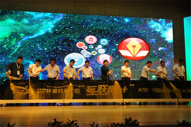 本次大赛以“勇立时代潮头敢闯会创,扎根中国大地书写人生华章”为主题,兰州理工大学校长芮执元为开幕式致辞,甘肃省教育厅高教处处长张晓东为在场嘉宾介绍了本次竞赛的组织情况,大赛评委代表冯玺清介绍了评审规则,省教育厅党组书记、厅长王海燕在讲话中指出,大学生要志存高远,持之以恒,让青春与创新同行。她希望各高校以大赛为抓手,实现以赛促教、以赛促学、以赛促创的目标,切实提高人才培养质量;要主动加强与社会各界的合作,共筑互联网+时代创新创业梦想。随后,参会领导、嘉宾共同撒下金色流沙,寓意本次大赛正式启动。