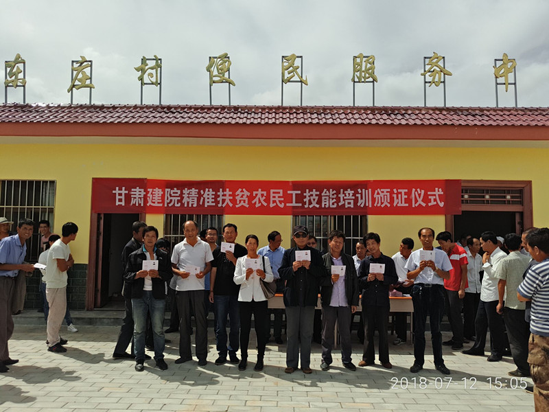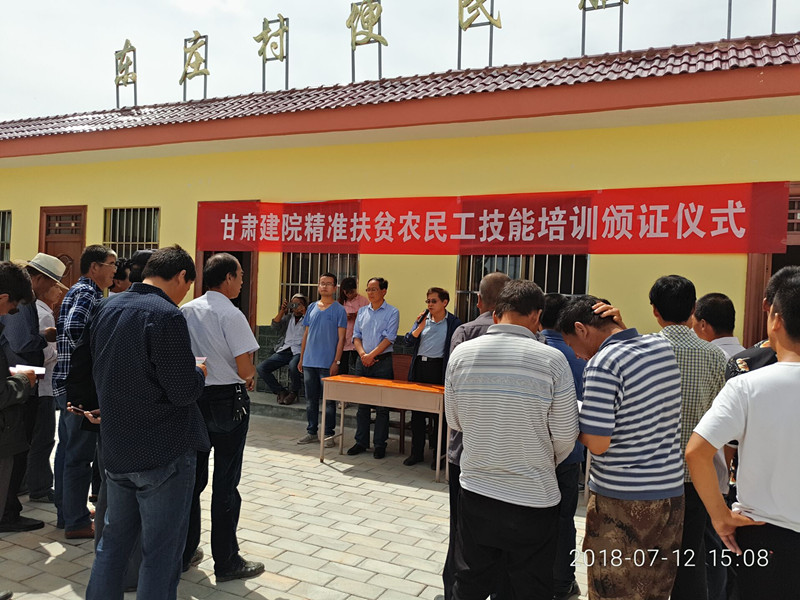 7月12日,甘肃建筑职业技术学院在帮扶点孟坝镇东庄村部举行了住建行业技能人员职业培训合格证颁证仪式。学院副院长谢钢出席仪式并颁发证书,动员更多的群众参与到农民工技能培训工作中,提高务工水平,获得更高收入。