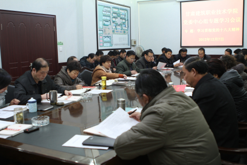 12月7日上午,学院党委在学院1号楼2楼会议室召开中心组学习会议,专题学习党的十八大会议精神,学院班子成员、全体中层干部等党委中心组成员共35人参加了会议。会议由党委书记马江主持。