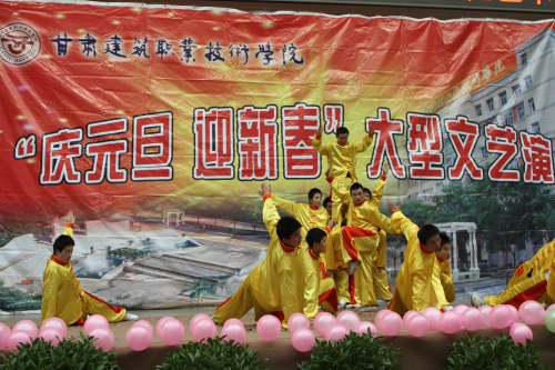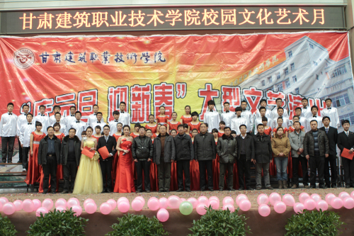 2012年12月28日下午,学院校园文化艺术月暨大学生文化艺术节——二〇一三“庆元旦 迎新春”大型文艺汇演在体育馆隆重举行。团省委学校部部长杨成、甘肃省直属机关团工委书记苏勇、甘肃省直属机关团工委书记丁荣、甘肃中医学院团委书记白江开、兰州交通大学博文学院团委书记彭国瑞、兰州资源环境职业技术学院团委书记冯永斌、兰州外语职业技术学院团委书记方晓丽应邀参加了此次演出活动,我院党委书记马江、副院长李社生、副院长王娟丽、副院长王继伟、副院长谢钢、院长助理刘亚龙及我院部分师生共同观看了演出。