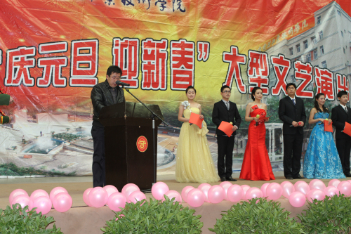 学院党委书记马江首先致辞,对前来观看演出的嘉宾表示欢迎,对所有参演师生和服务人员的辛苦付出表示深深地感谢,对学院全体师生送上新春的祝福。并指出,校园文化艺术月是深入贯彻《中共中央、国务院关于进一步加强和改进大学生思想政治教育的意见》的文件精神、紧密贴合学院“有巢氏”校园文化建设主题、落实校园文化建设方案而开展的系列文化活动,丰富了大学生文化艺术生活,提高了大学生的审美能力,同时也有利于促进大学生综合素质的养成。马书记强调,下一步要继续总结经验,全面落实我院校园文化建设实施细则,围绕“弘扬有巢氏精神,构建文化建院”这一主题,注重挖掘适应我院发展的校园文化建设内容,努力打造更多的富有建院特色的校园文化建设品牌,不断丰富校园文化建设内涵,大力提升我院校园文化建设的质量和水平,积极营造文化育人的良好环境,为推进我院示范校建设、提升人才培养工作水平做出新的更大的贡献。