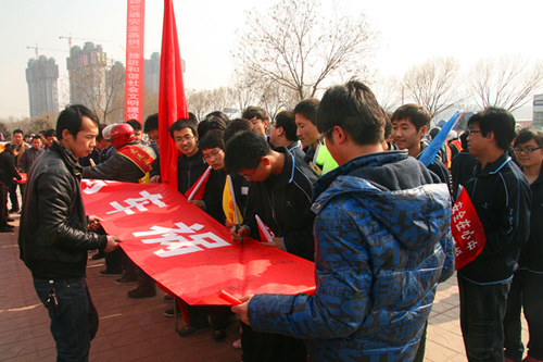 在活动中,我院学生代表作了精彩的发言,代表全院师生真诚的呼吁广大社会各界人士要自觉遵守交通法规,时刻谨记安全出行。活动的最后,我院全体大学生“交通安全志愿者”参与了“珍爱生命 远离车祸”的大型签名活动。