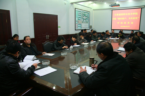 3月2日,甘肃建筑职业技术学院响应省委和省教育厅号召,召开部署“联村联户、为民富民”行动会议。学院领导和全院各系部、处室负责人参加会议。会议由党委书记马江主持。
