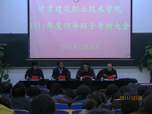 12月20日下午3时30分,学院2011年度领导班子考核大会在2号楼阶梯教室召开,教育厅考核组成员教育厅高教处处长李慕堂、省政府教育督导团办公室主任李春芮、省教育厅人事处主任胡晶一行三人来我院开展考核工作,考核大会由院党委书记马江主持,学院中层及以上领导干部和中级及以上职称教职工130人参加了考核大会。本次考核大会分个人述职和民主测评两部分进行。