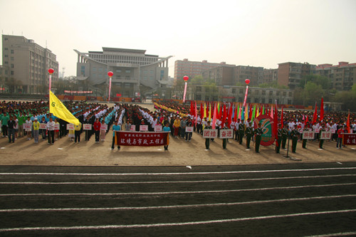 2011年4月26日上午,学院操场彩旗飘展、欢声雷动,甘肃建筑职业技术学院第十八届田径运动会隆重开幕。院党委书记马江、院长田树涛、副院长李社生、孟兰生、王娟丽、王继伟、谢钢以及全体中层领导出席了开幕式,开幕式由副院长王继伟主持。