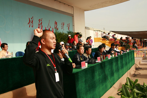 随后,裁判员代表鞠鹏和学生代表分别代表全体裁判员、全体参赛运动员宣誓,会务组组长高雁晋宣读大会须知。开幕式后,进行了大型团体操表演。