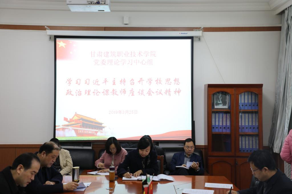 3月25日,甘肃建院党委理论中心组组织学习了《习近平主持召开学校思想政治理论课教师座谈会》的相关内容。学院党委书记、院长王娟丽及中心组成员参加了学习会,党委副书记、纪委书记王继伟主持学习。